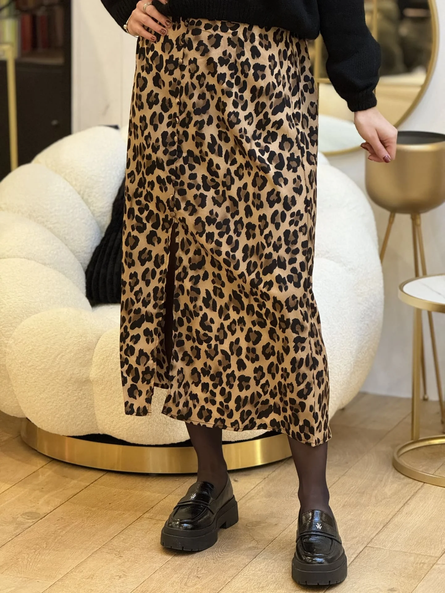 - Jupe longue avec fente imprimé léopard