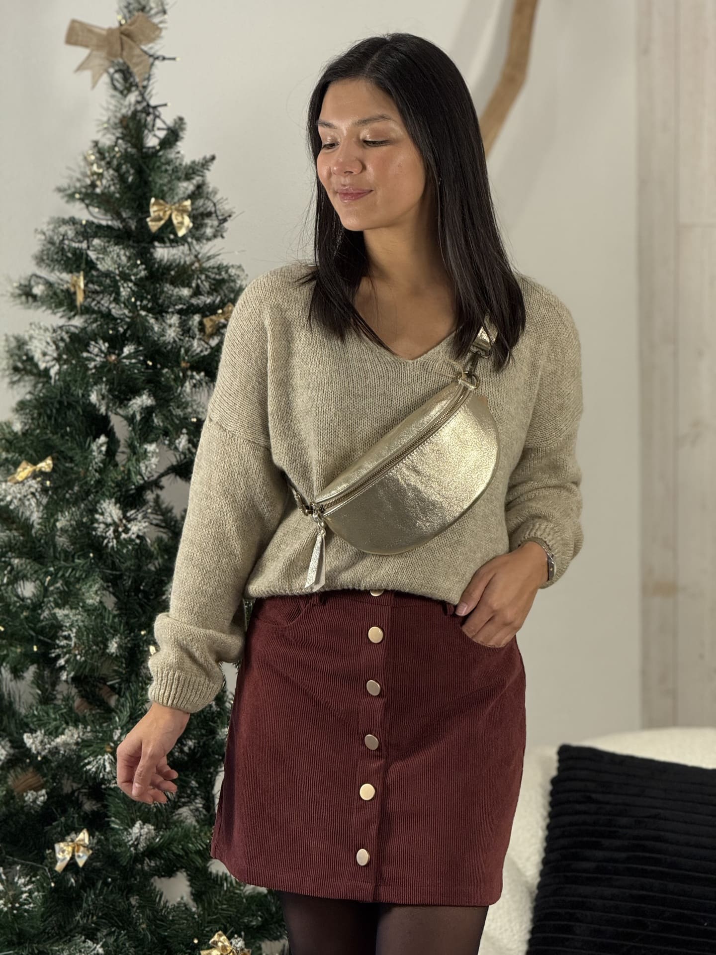 Jupe courte en velours côtelé avec boutons Juliette mesure 1m63 et Mathilde mesure 1m65. Elles portent la taille S pour ce modèle. Taille : S (36) / M (38) / L (40) / XL (42) Composition & entretien : 100% POLYESTER Lavage à la main conseillé Besoin d’un conseil ? Consultez notre foire aux questions […]