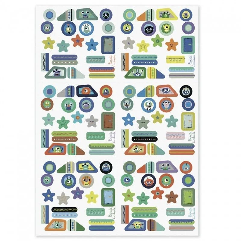 Ce kit créatif est composé de 4 fusées en carton à monter puis à décorer à l’aide des 120 stickers inclus.