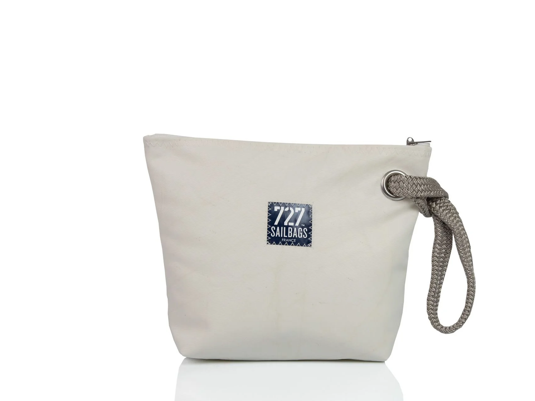 La Midinette est un petit sac qui permet de rassembler les éléments nécessaires à votre journée. Elle se porte à la main. La Midinette est réalisée à partir de voile de bateau 100% recyclée. Numéro 6 bleu cousu avec notre célèbre point ZigZag.