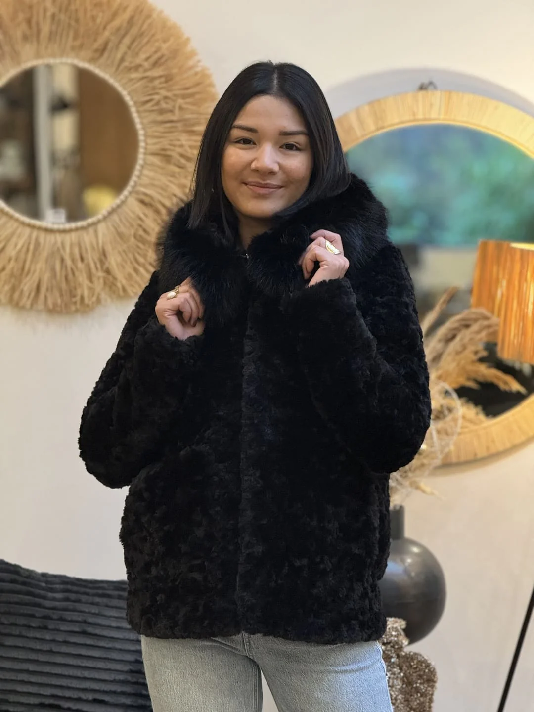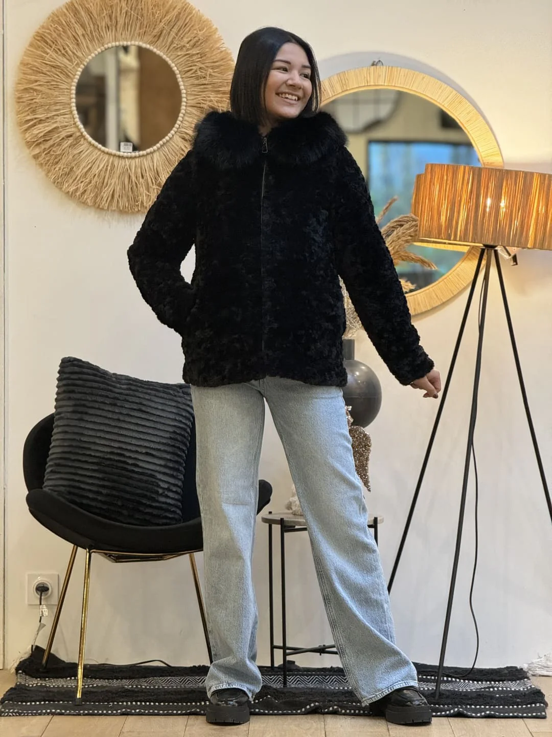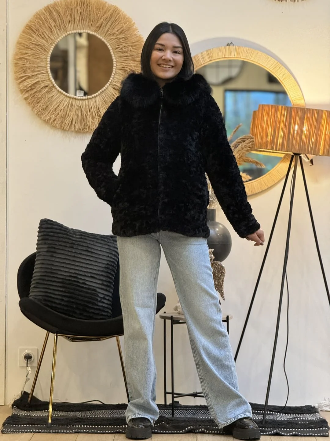 - MANTEAU COURT ML TOUT DOUX – COL FOURRURE