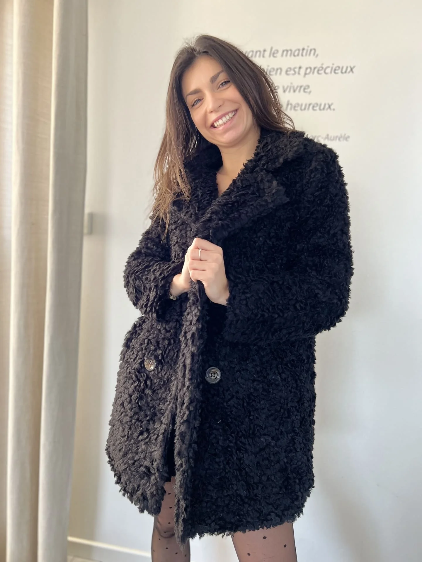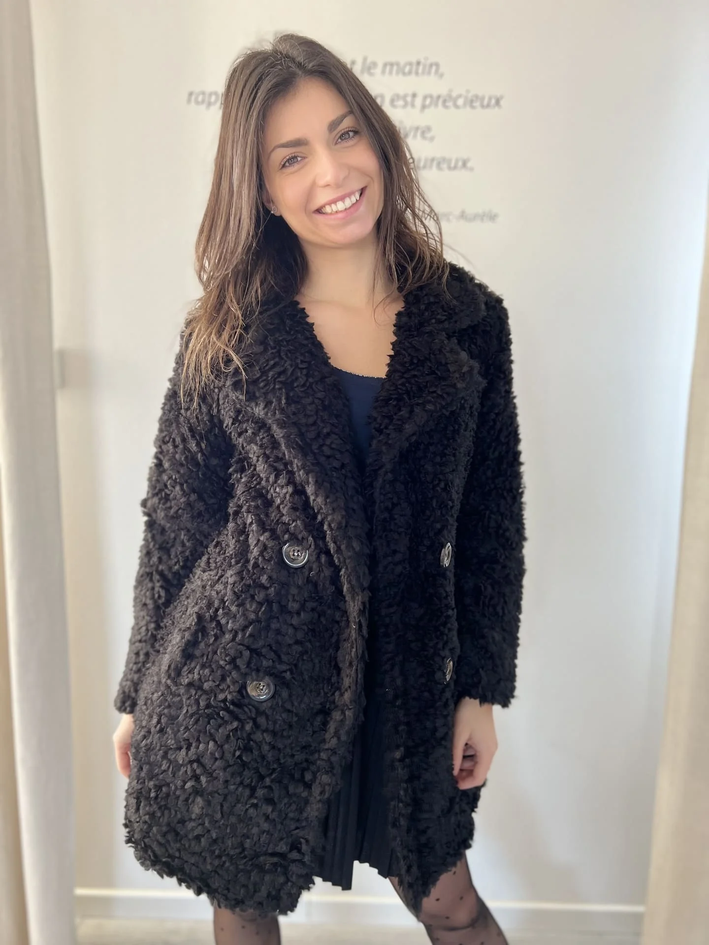• Manteau court fourrure avec boutons