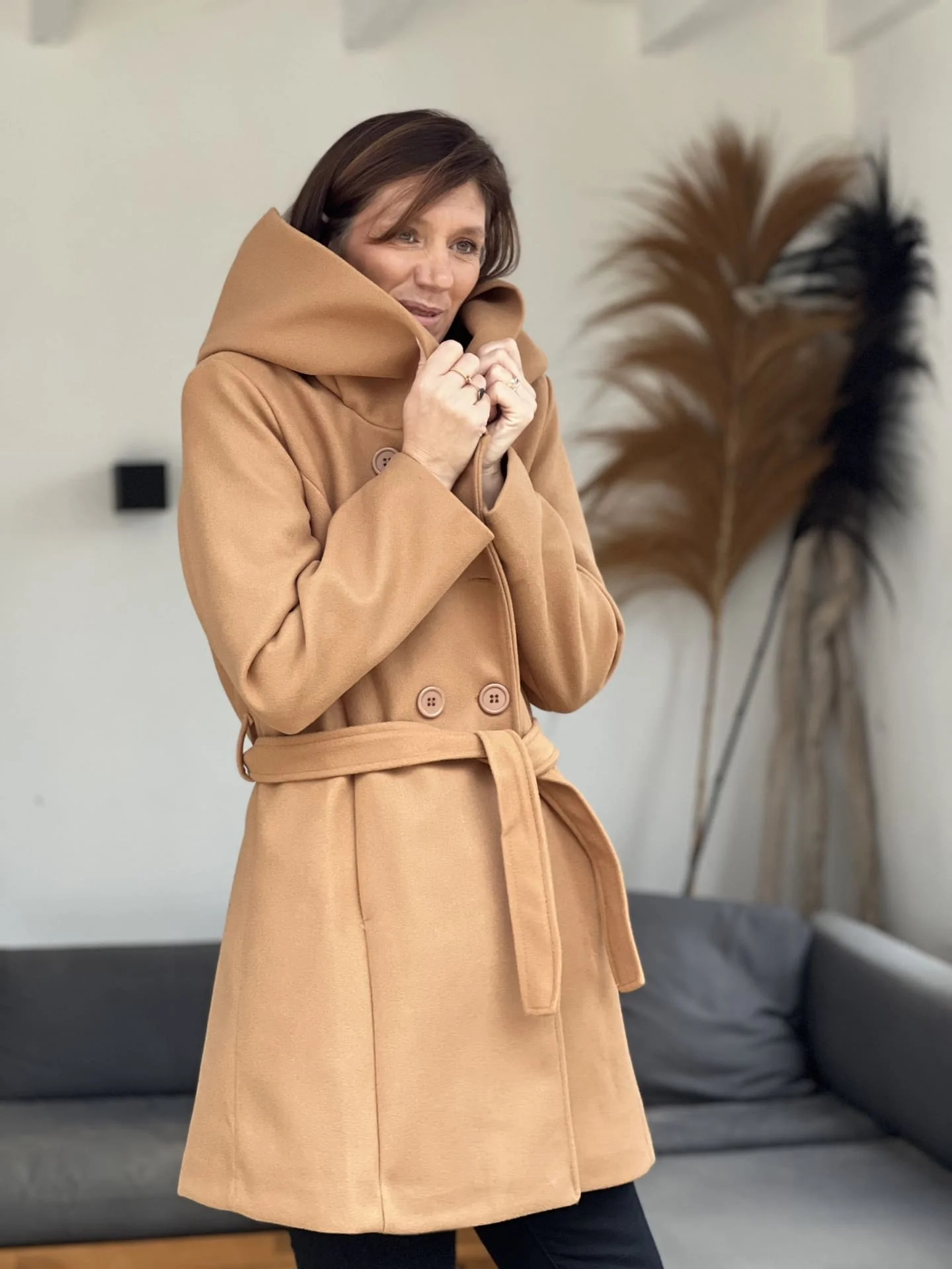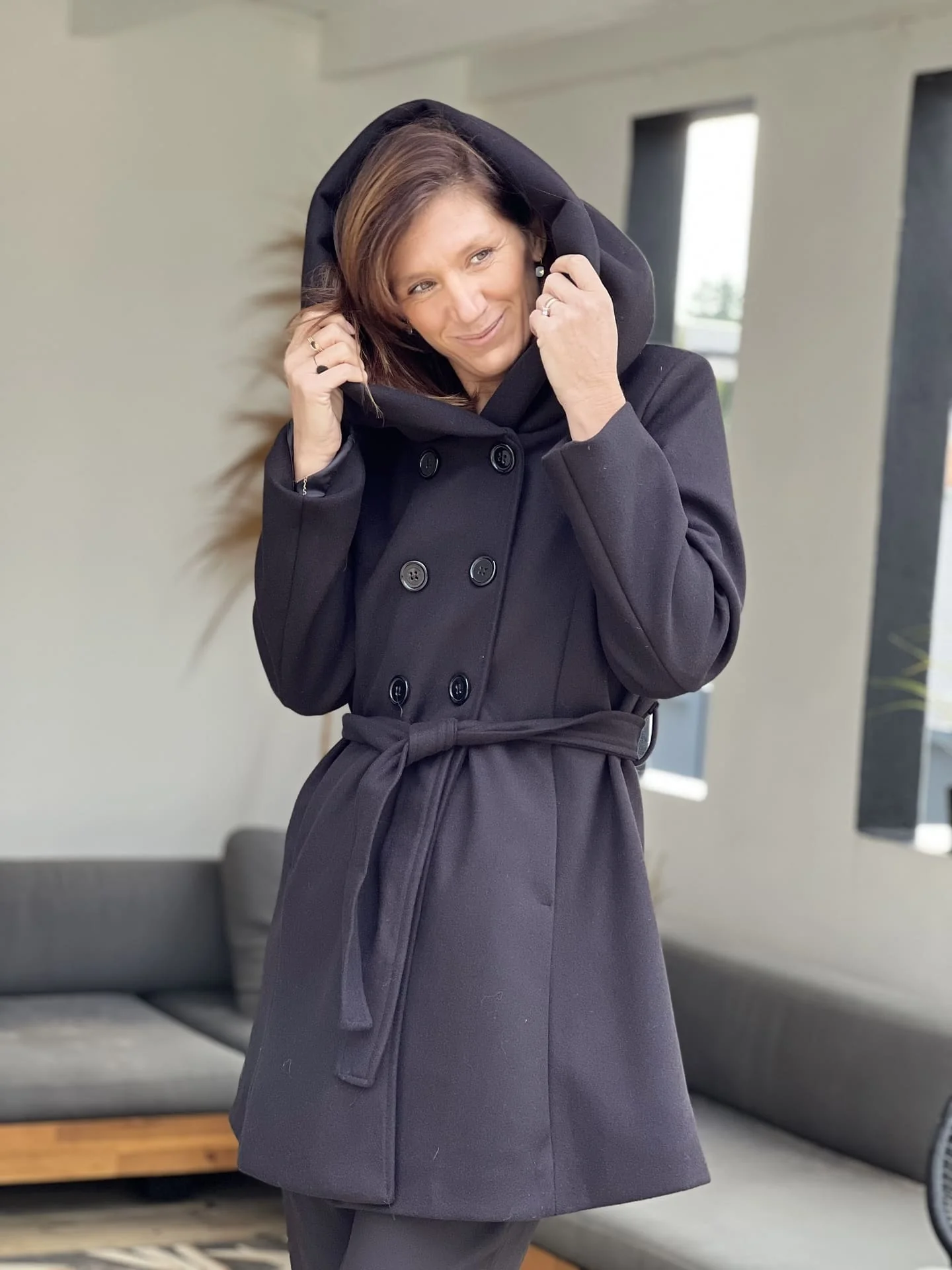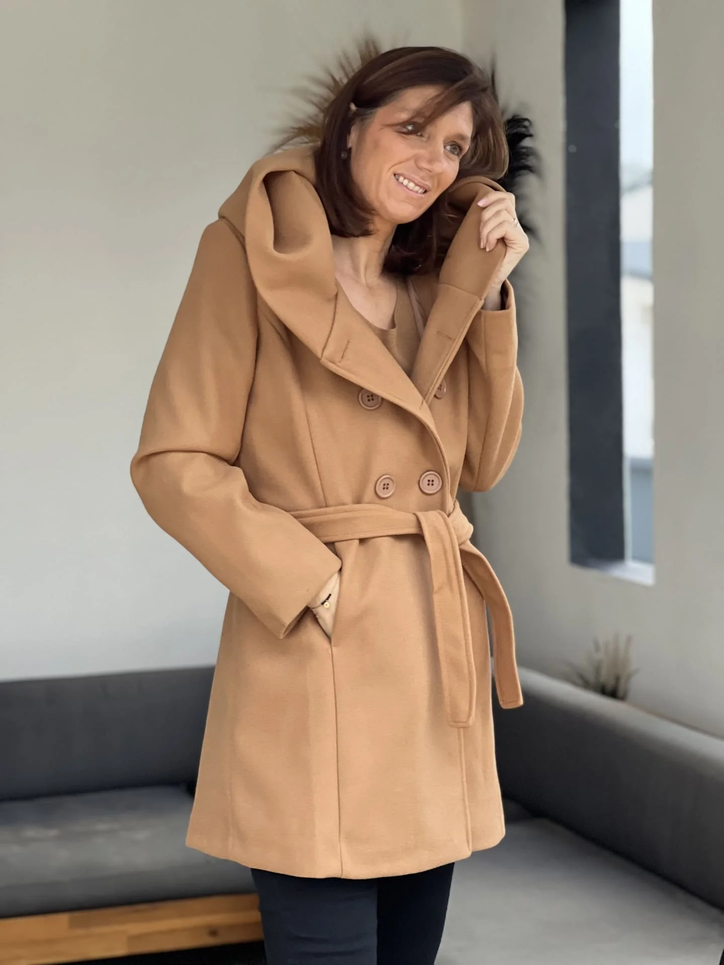 - Manteau mi-long avec ceinture