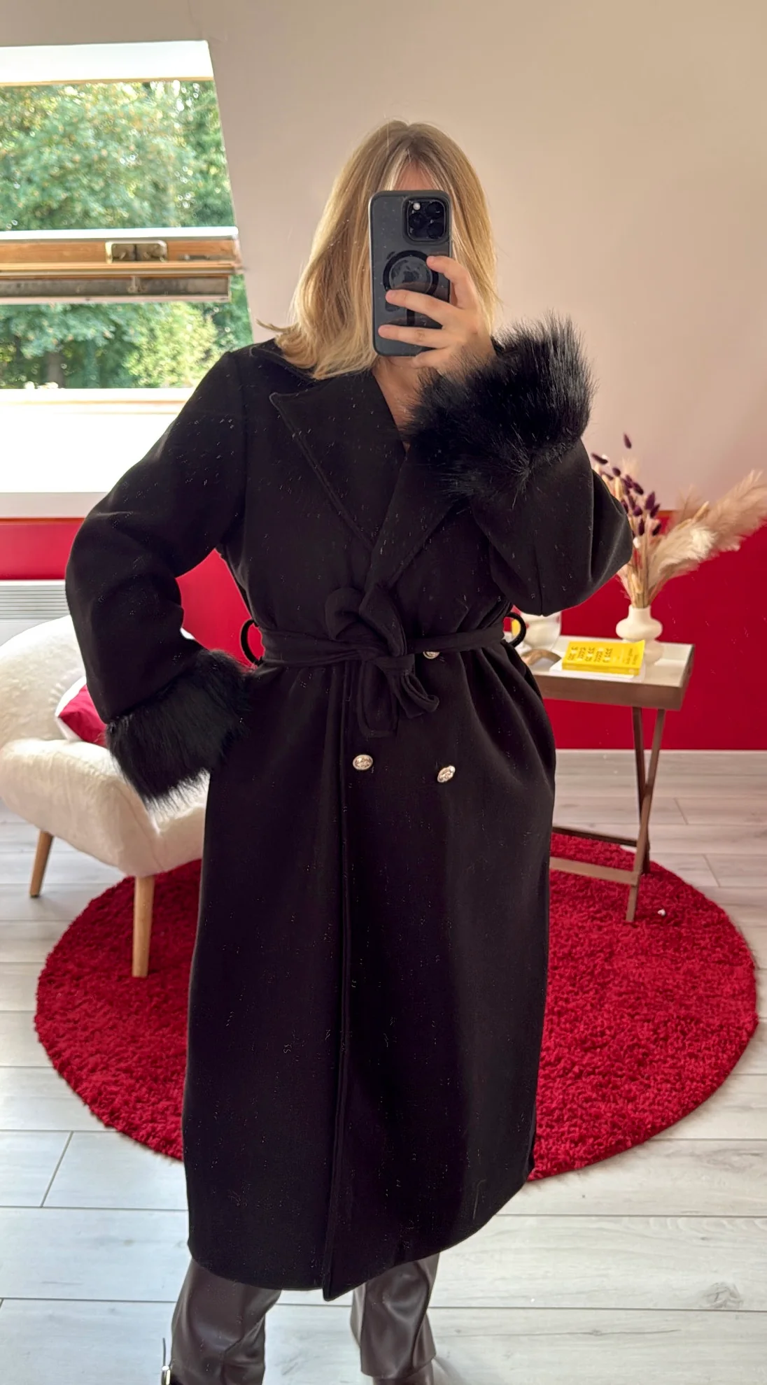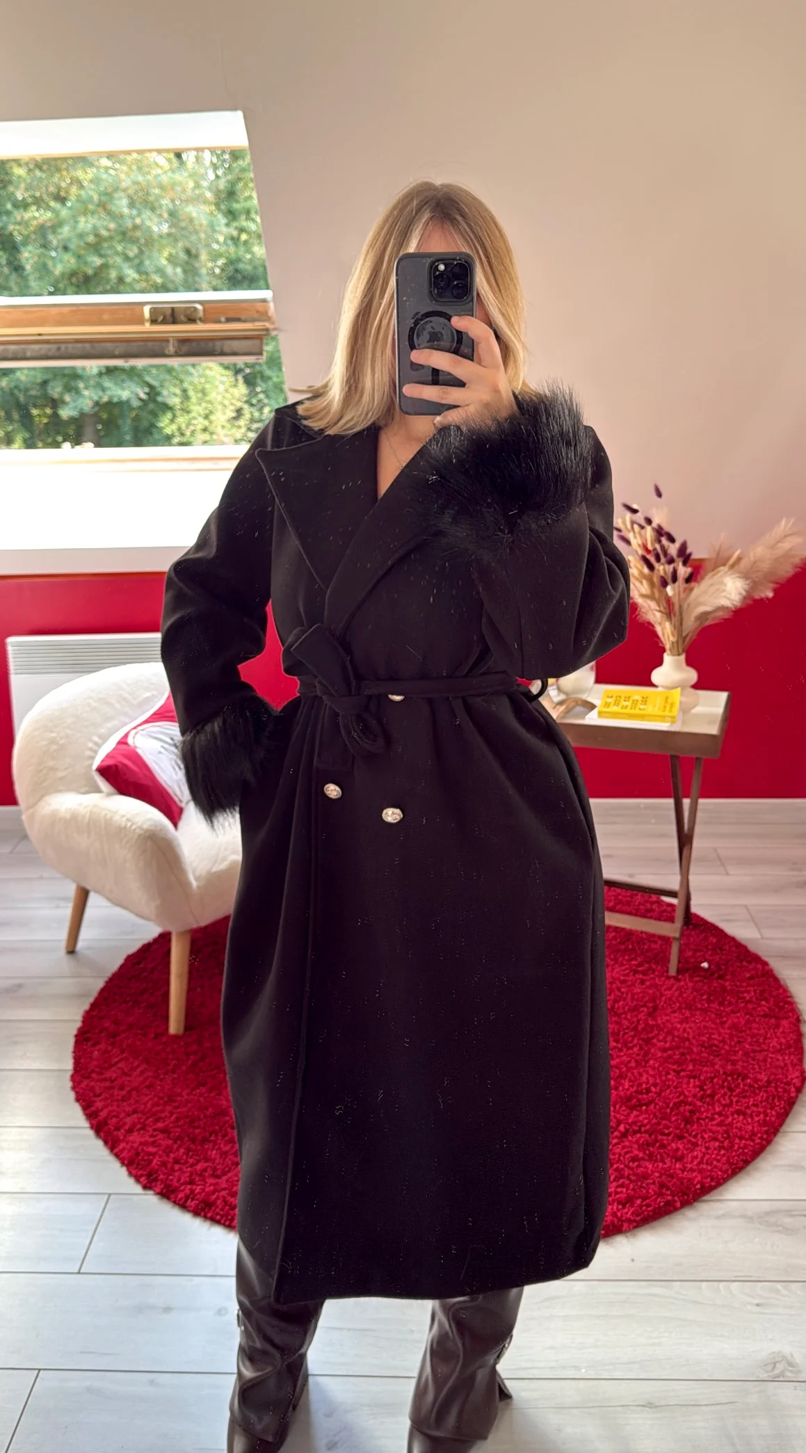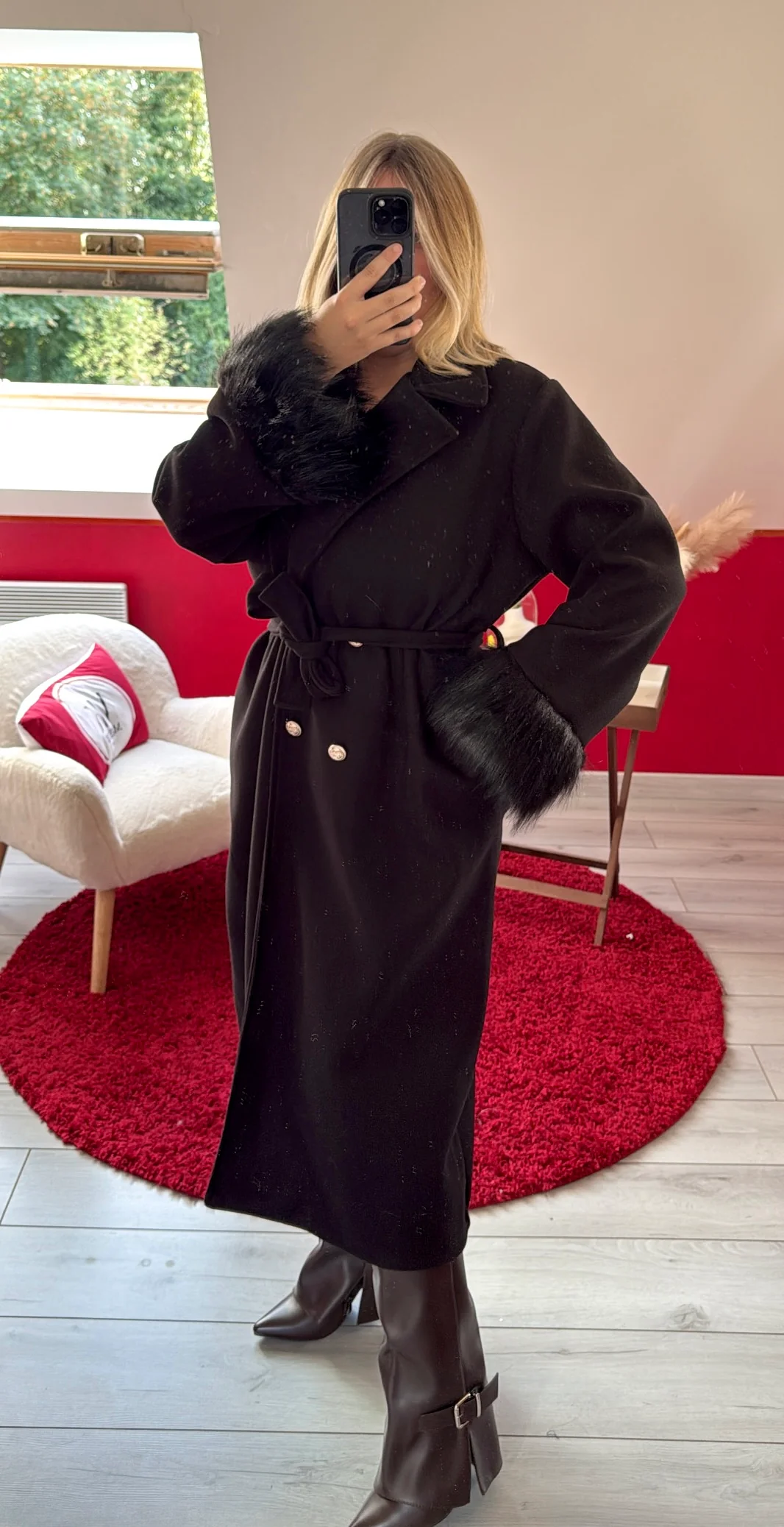 MANTEAU LONG MANCHE FOURRURE NOIR