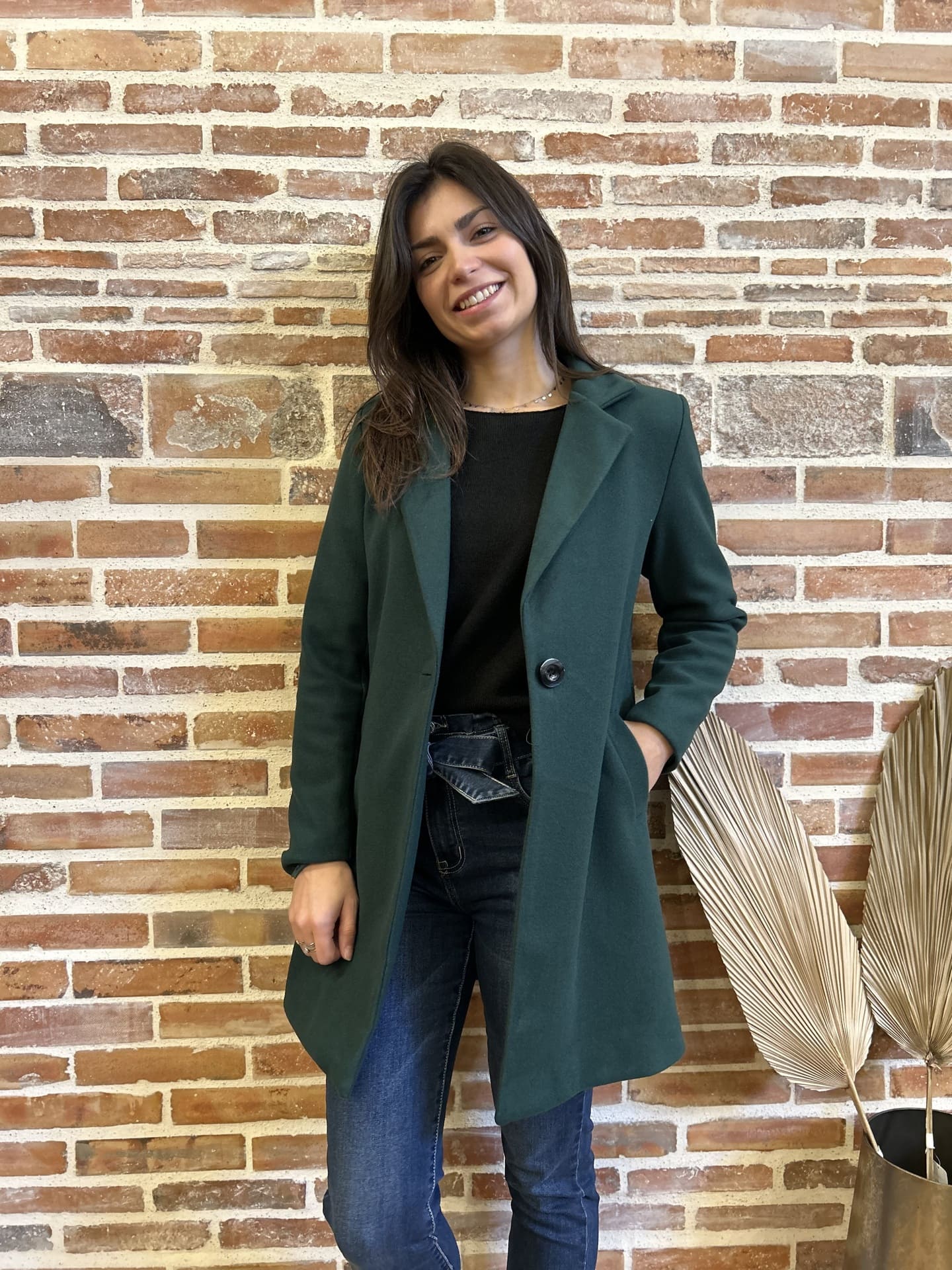 - Manteau mi-long 2 poches, 1 bouton