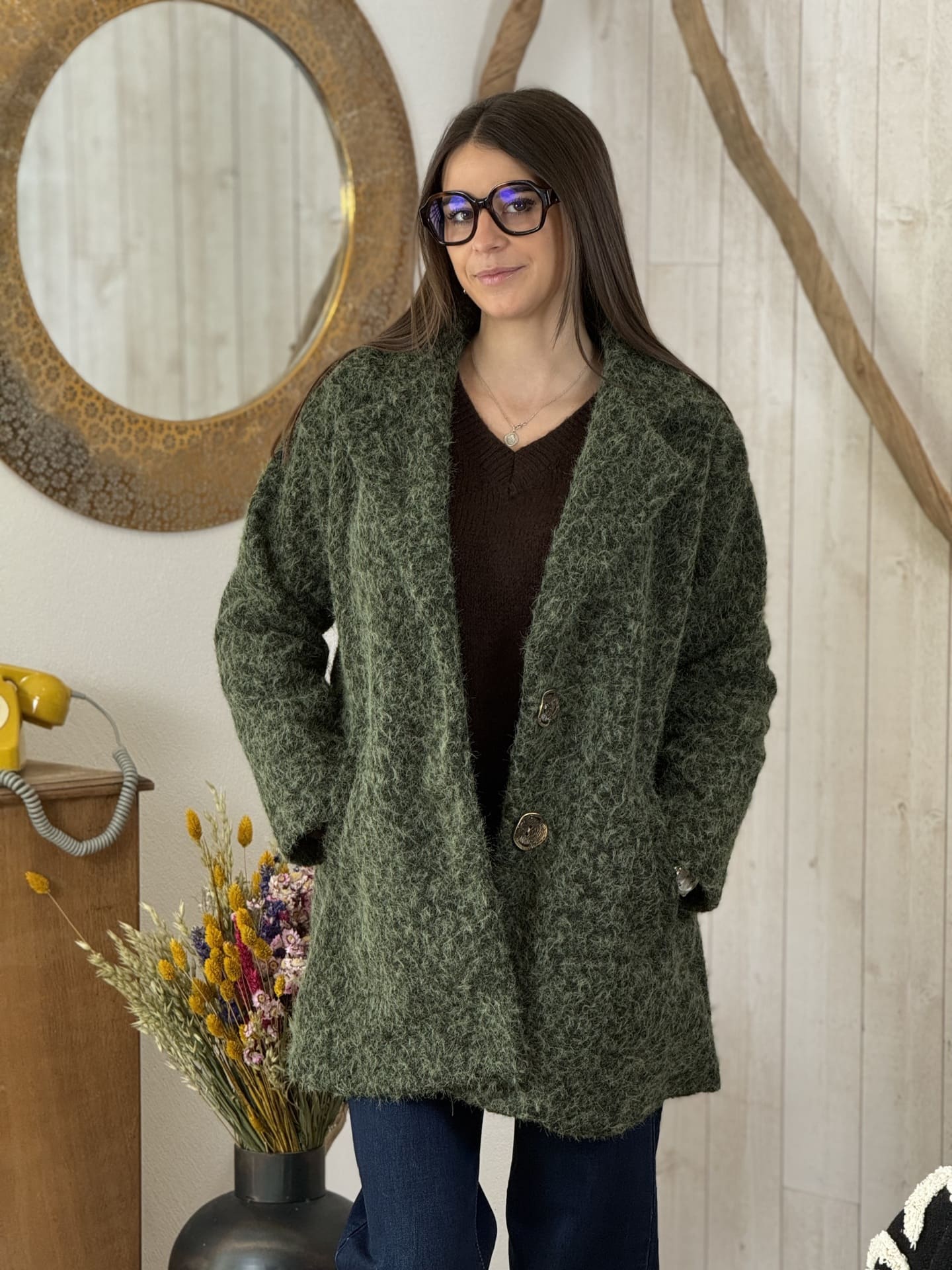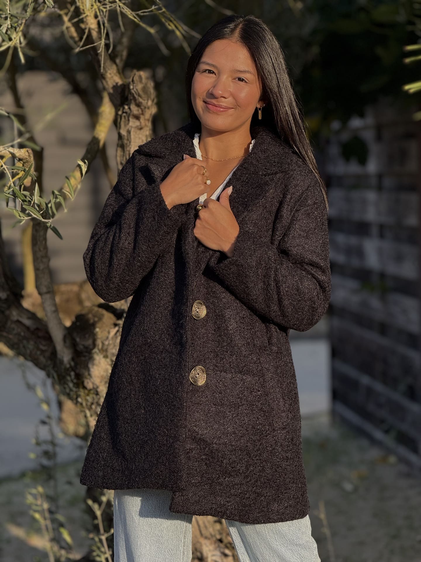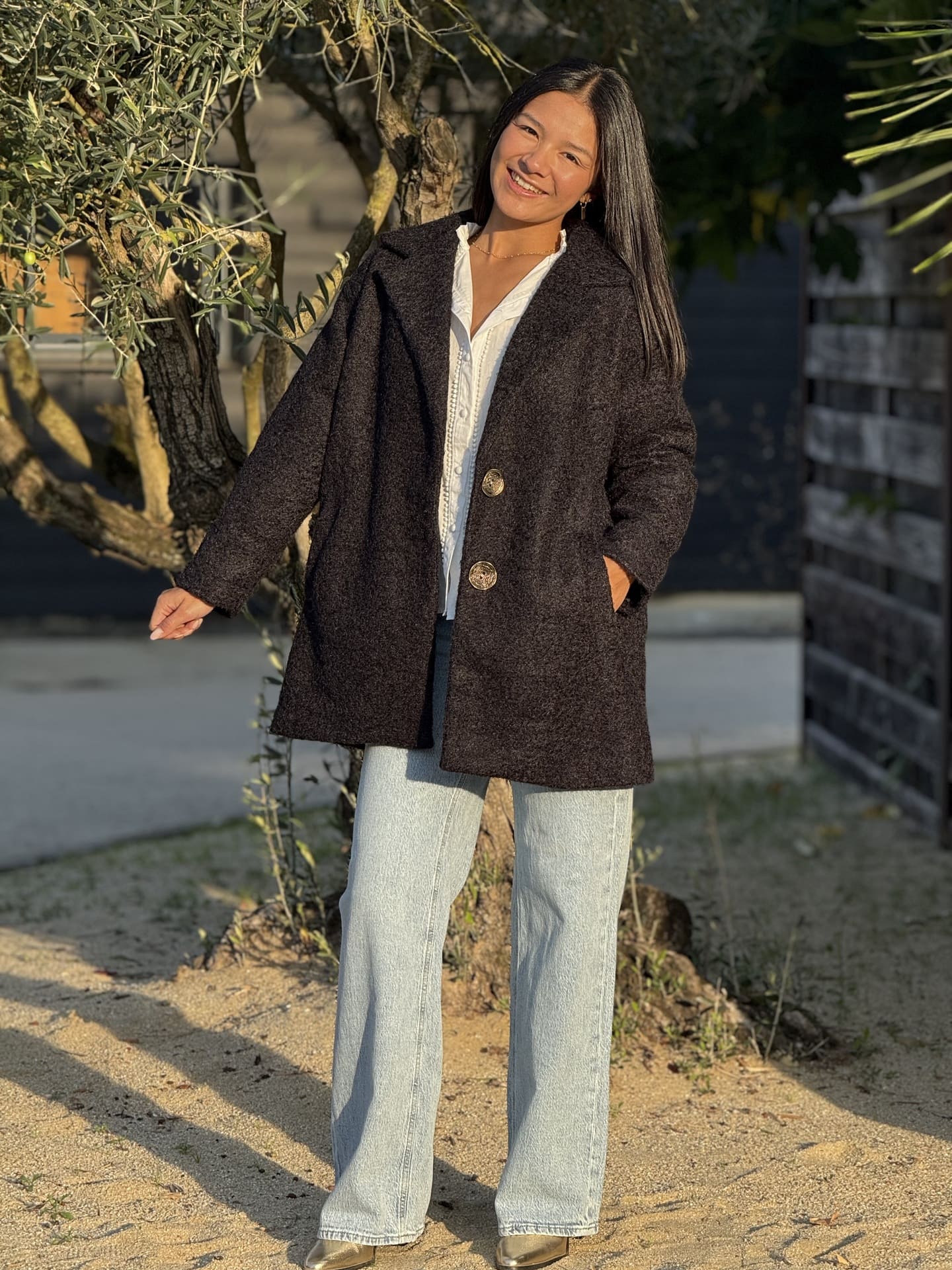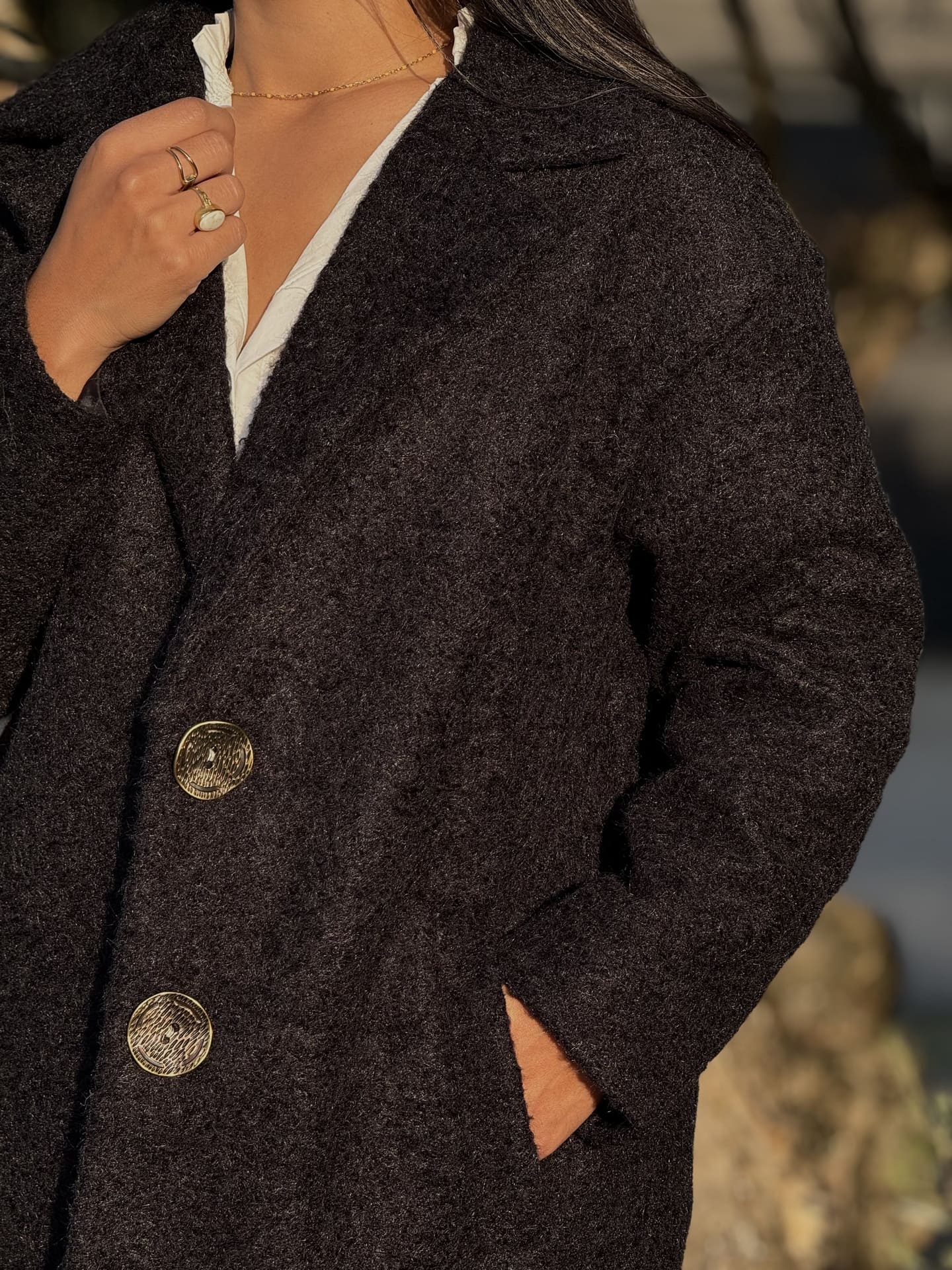 - MANTEAU LONG AVEC 2 POCHES ET 2 BOUTONS