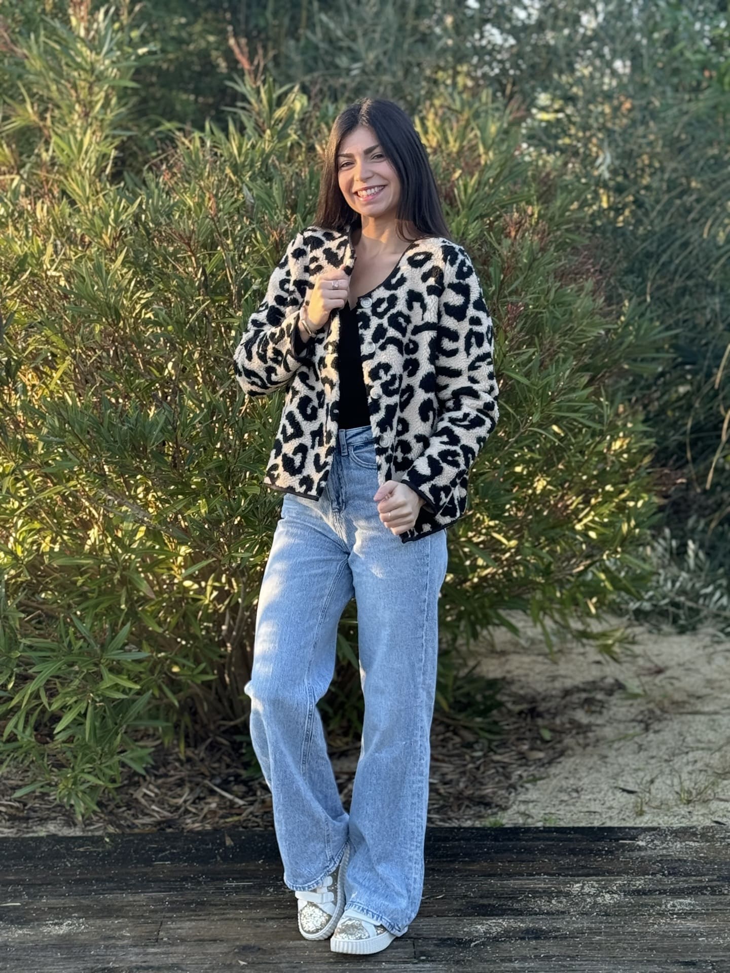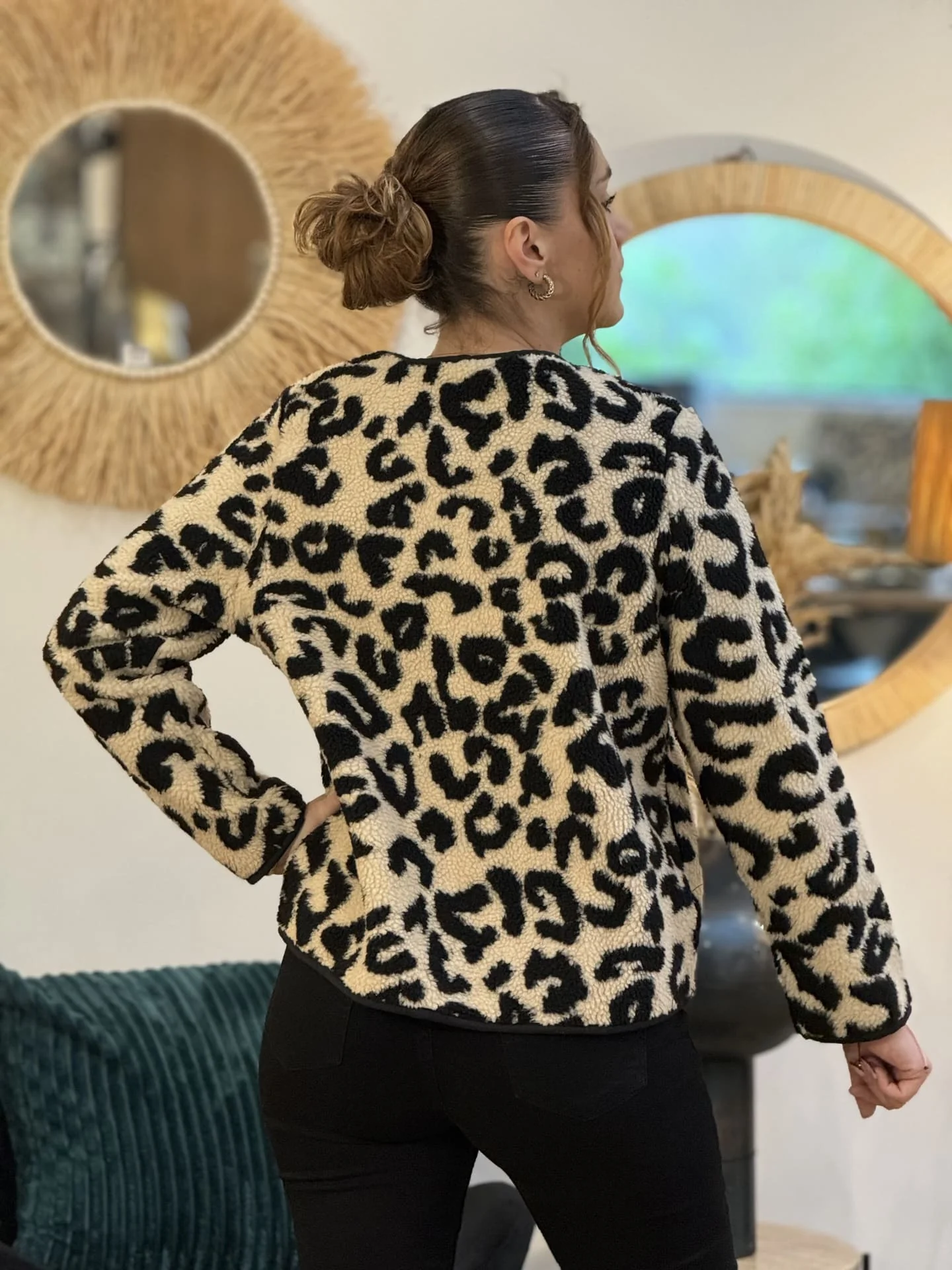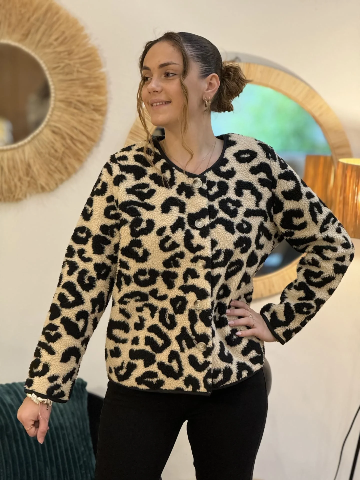 - MANTEAU COURT 5 BOUTONS MOUMOUTE À ml imprimé léopard