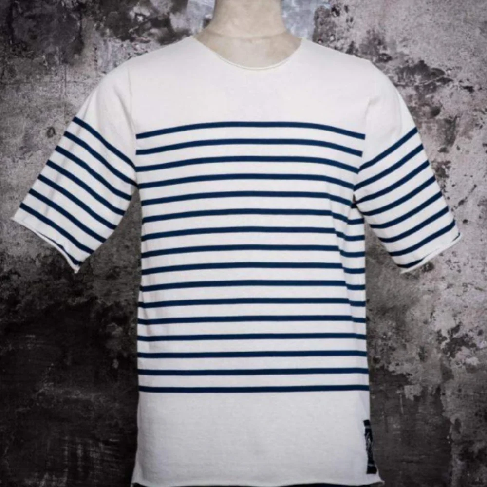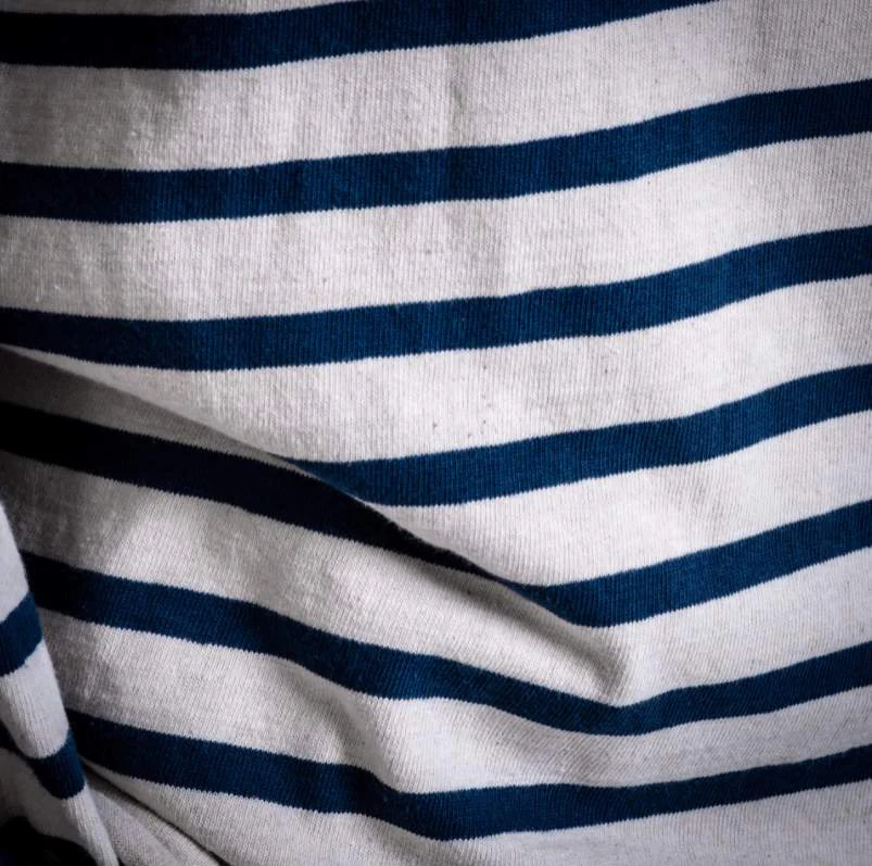 Tricot 100% Coton Fluide, légère & résistanteCe modèle est la version manches courtes de la version Marinière TOULON ClassiqueBords roulottés manches + col, coupe franche rasage simple INSPIRATION Marinière règlementaire Marine FrançaiseFabrication française . Tricoté à GUIDEL dans le MORBIHAN