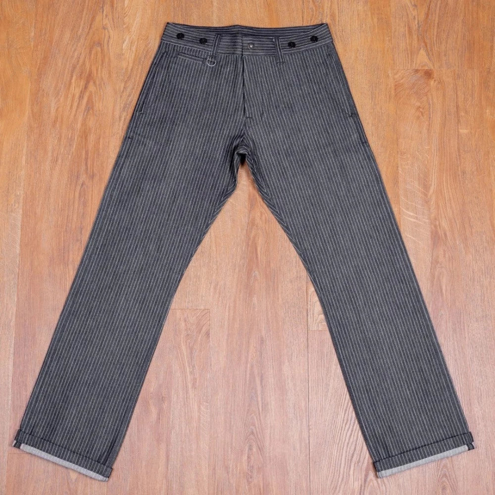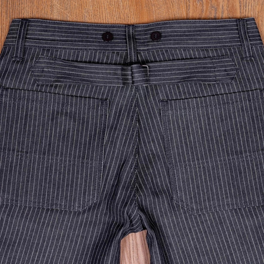 Le pantalon 1942 blue wabash est un classique du vestiaire workwear. Sa coupe ni trop ample ni trop ajusté permet de le porter facilement et la martingale dans le dos permet d’ajuster la taille si besoin.