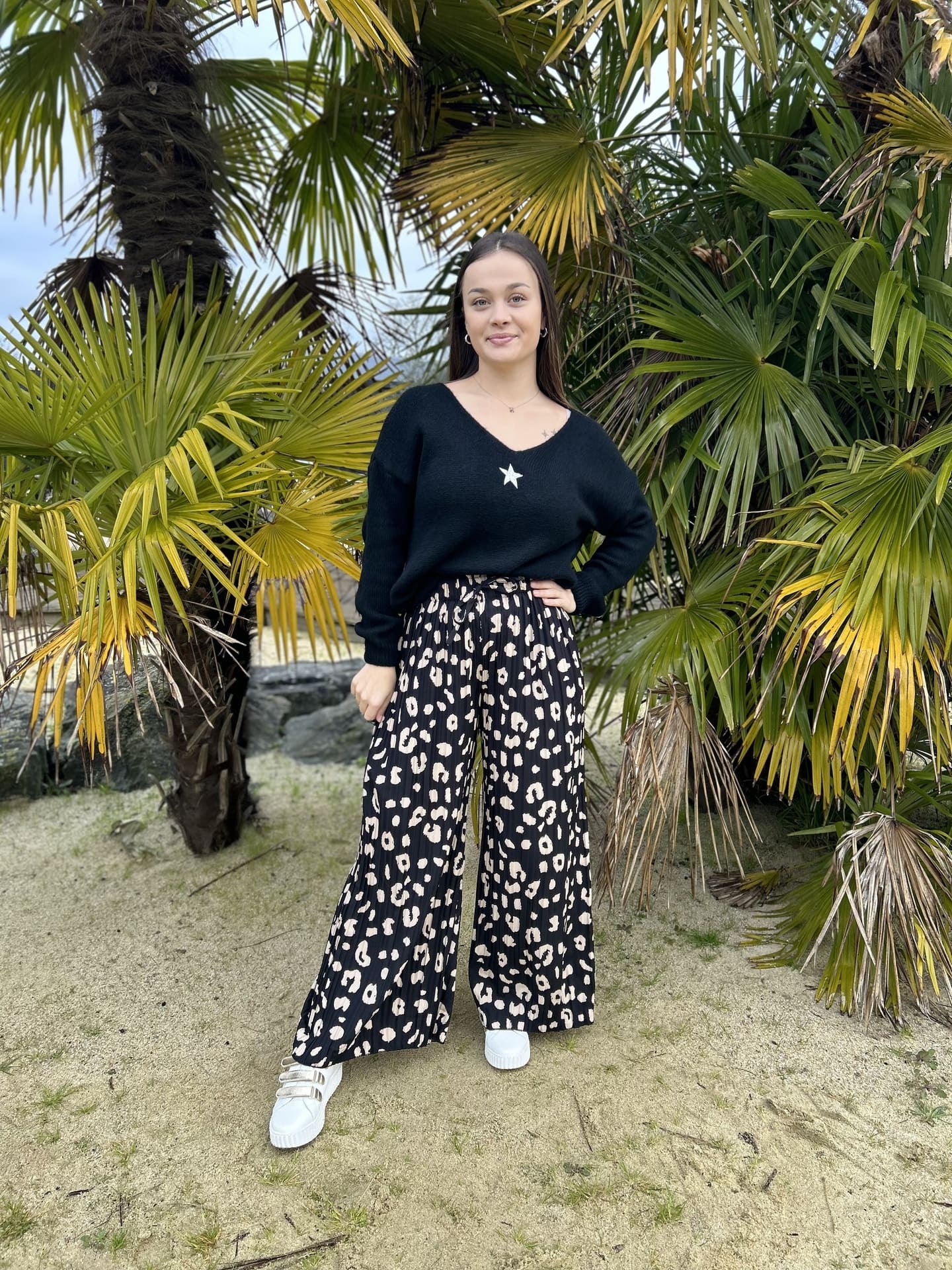 PANTALON PLISSÉ IMPRIMÉ LEOPARD Taille : Juliette mesure 1m63. Elle porte la taille S/M pour ce modèle. Taille : S/M (36-38) et M/L (38-40) Composition & entretien : 95% POLYESTER 5% ELASTHANNE Lavage à la main conseillé Besoin d’un conseil ? Consultez notre foire aux questions ou contactez-nous via notre formulaire de contact