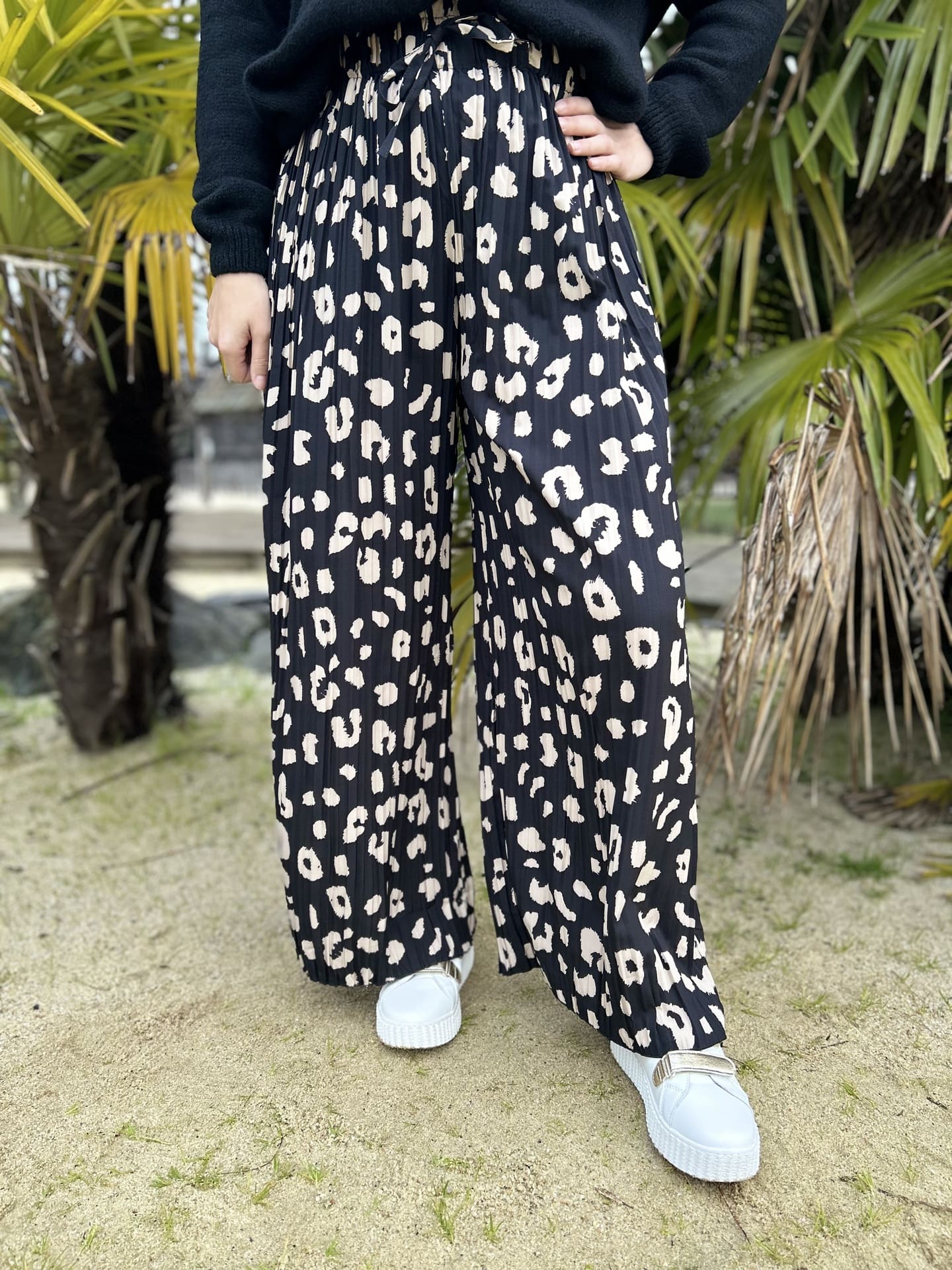 - PANTALON PLISSÉ IMPRIMÉ LEOPARD