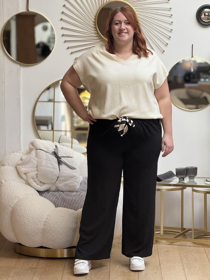PANTALON LARGE ET FLUIDE AVEC CEINTURE IMPRIME MULTICOLORE Taille : Mathilde mesure 1m65 et Justine mesure 1m69. Elles portent la taille S/M pour ce modèle. Margaux mesure 1m68. Elle porte la taille 2XL (44) pour ce modèle. Taille : S/M (36-38) et M/L (38-40) Grande taille: L (40) XL (42) 2XL (44) 3XL (46) 4XL […]