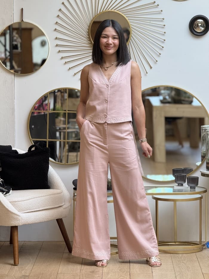 Pantalon large avec broderie sur le bas Mathilde mesure 1m65. Elle porte la taille S pour ce modèle. Taille : S (36) / M (38) / L (40) Composition & entretien : 55% VISCOSE 35% LIN 10% POLYESTER Lavage à la main conseillé Besoin d’un conseil ? Consultez notre foire aux questions ou contactez-nous via […]