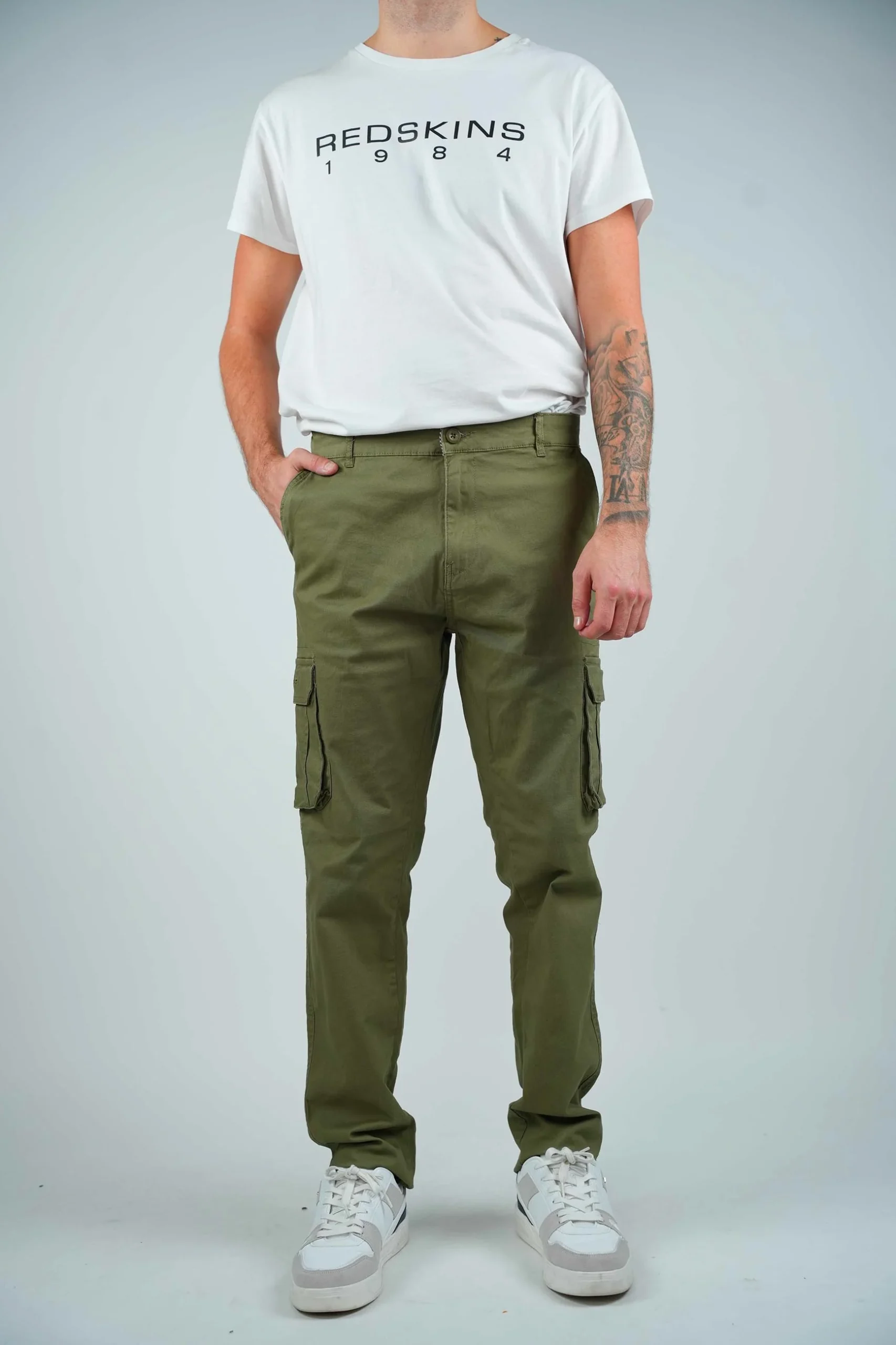 PANTALON ADULTE 4545 ; Pantalon cargo ; 2 poches latérales ouvertes ; 2 poches à rabat avec scratch, Logo Redskins brodé sur la poche à rabat droite ; 2 poches à rabat avec scratch à l’arrière ; Fermeture zip et bouton