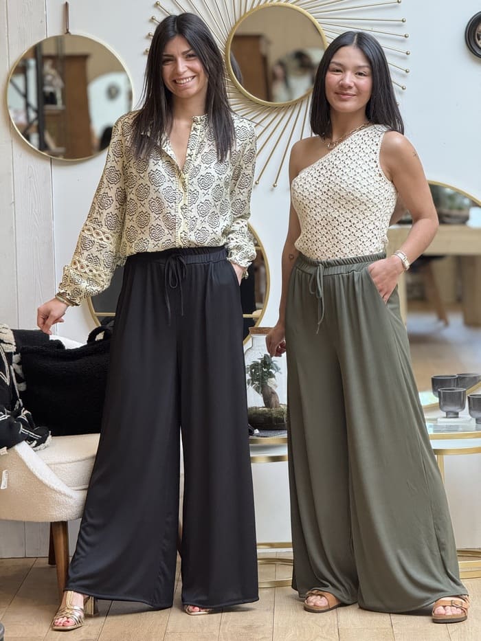 - Pantalon fluide avec nœud a resserer a la ceinture