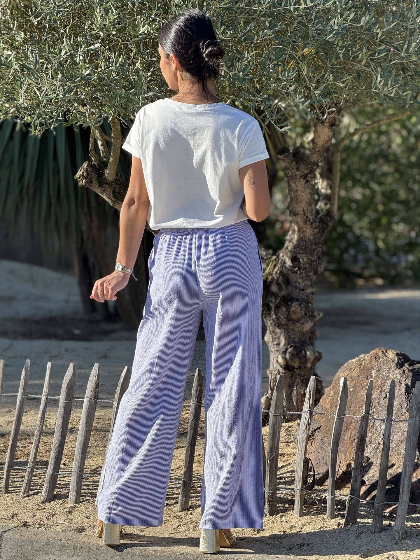 Pantalon large fluide imprime RAYURES avec lien Taille : Mathilde mesure 1m65. Elle porte la taille S/M pour ce modèle. Taille : S/M (36-38) et M/L (38-40) Composition & entretien : 100% COTON Lavage à la main conseillé Besoin d’un conseil ? Consultez notre foire aux questions ou contactez-nous via notre formulaire de contact