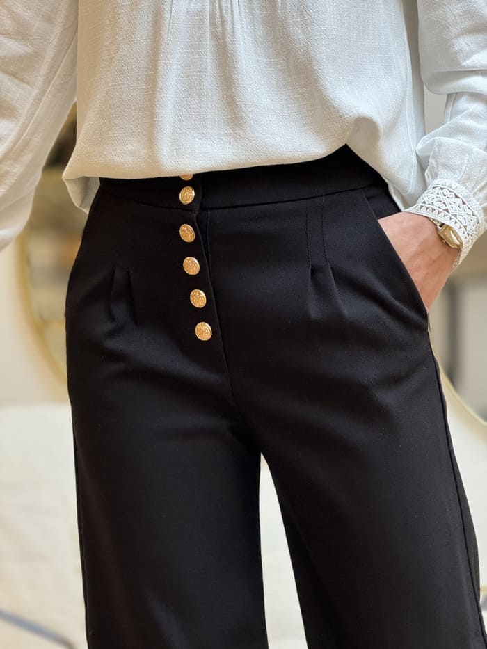 Pantalon fluide 6 boutons d’or Mathilde mesure 1m65. Elle porte la taille S pour ce modèle. Taille : XS (34) / S (36) / M (38) / L (40) / XL (42) Composition & entretien : 55% POLYESTER 45% VISCOSE Lavage à la main conseillé Besoin d’un conseil ? Consultez notre foire aux questions ou […]