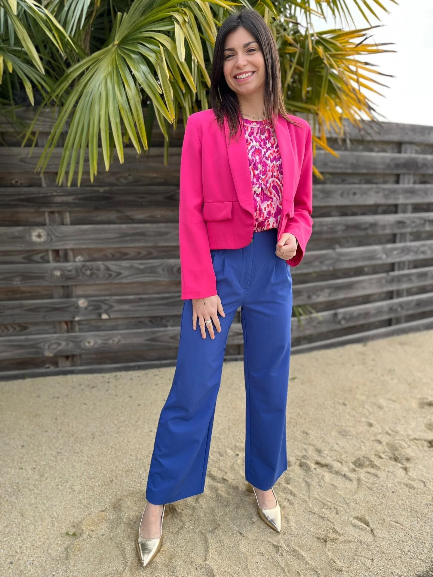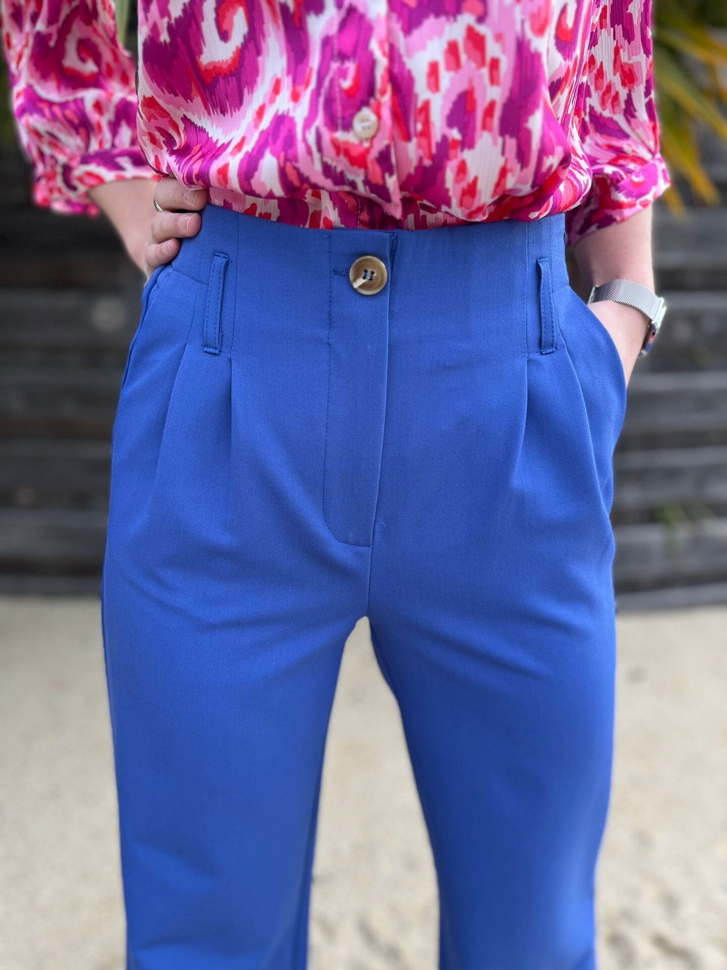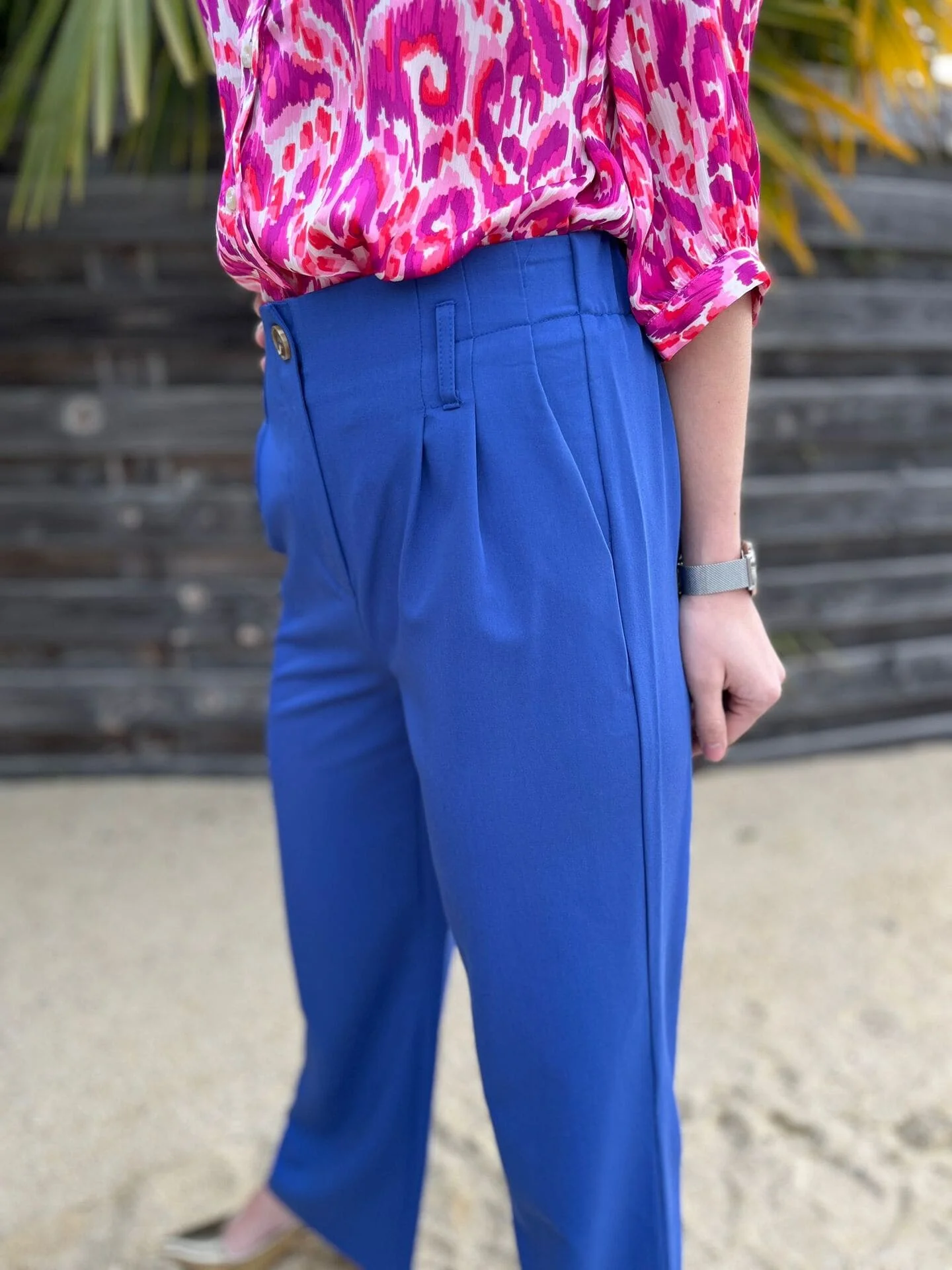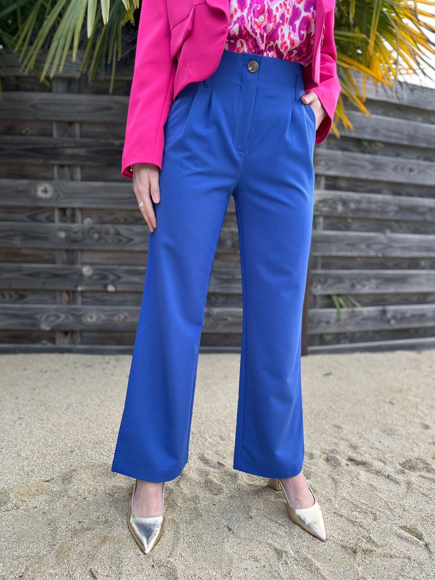 - Pantalon large avec 1 bouton et pinces