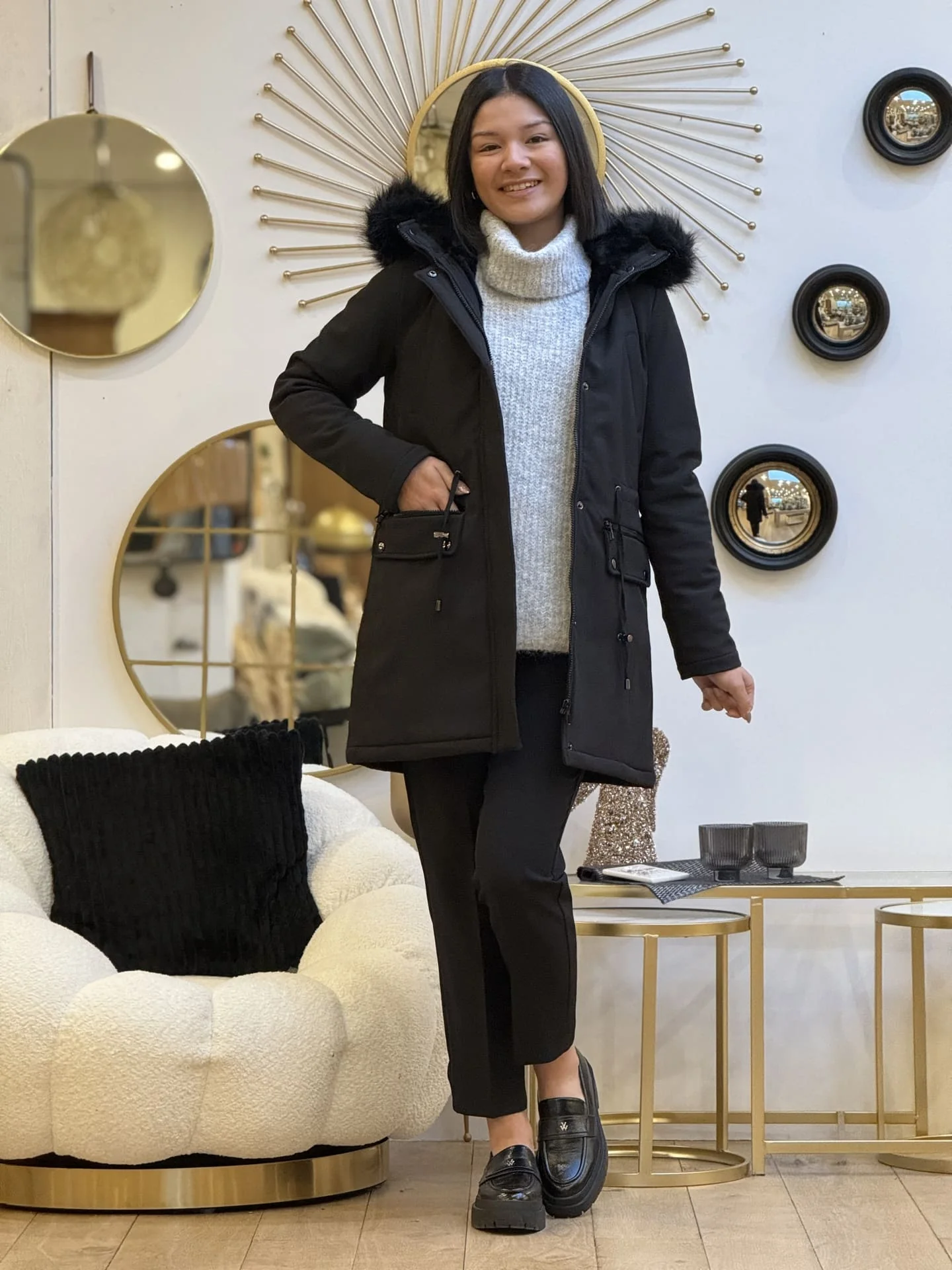 PARKA/DOUDOUNE longue avec 2 poches Capuche avec fourrure Taille : Justine mesure 1m69. Elle porte la taille S pour ce modèle. Nous vous recommandons de porter votre taille habituelle. Taille : S (36) / M (38) / L (40) / XL (42) Composition & entretien : 100% POLYAMIDE Lavage à la main conseillé Besoin d’un […]
