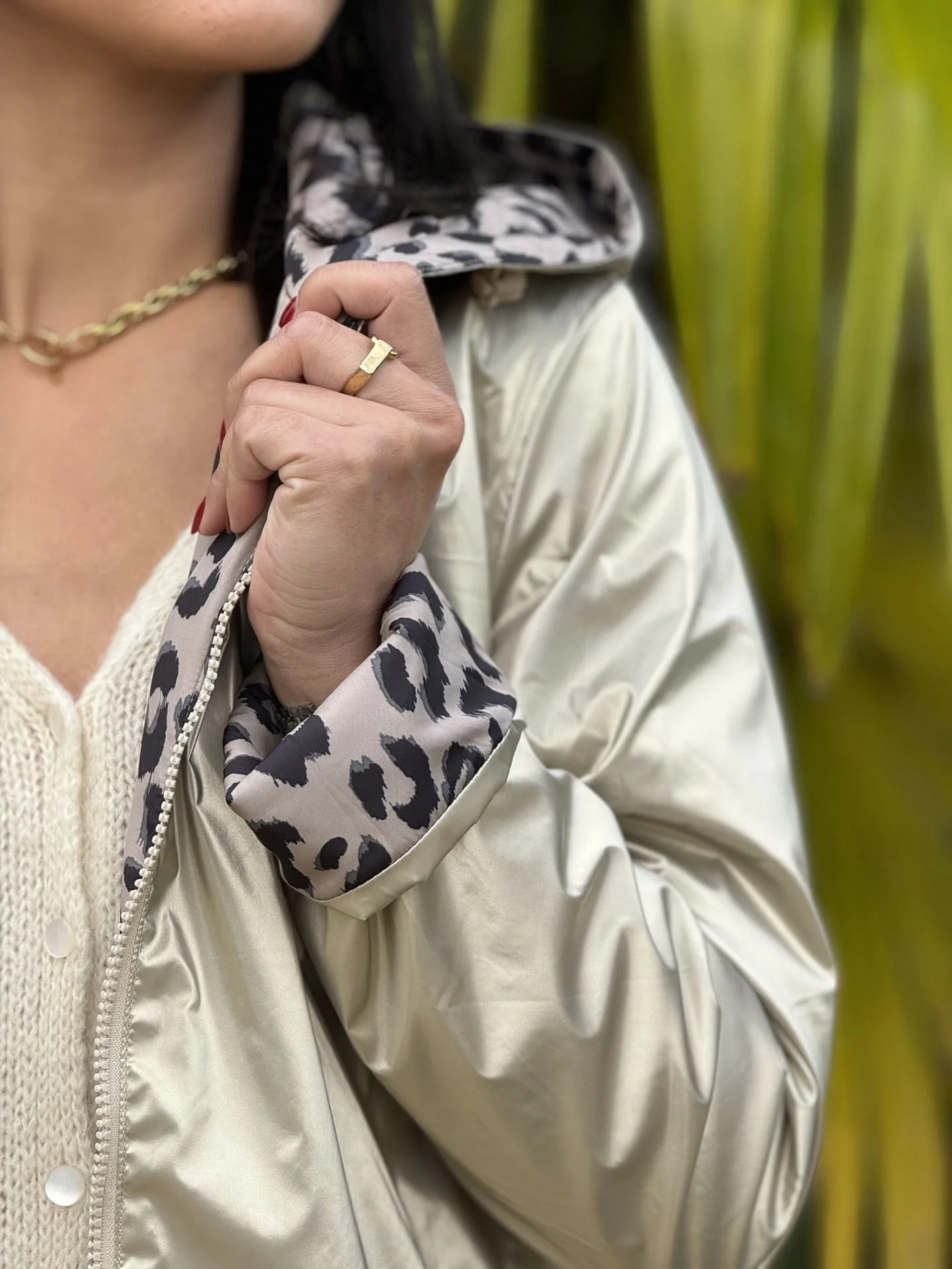 - Parka longue à ml avec capuche – réversible gold léopard