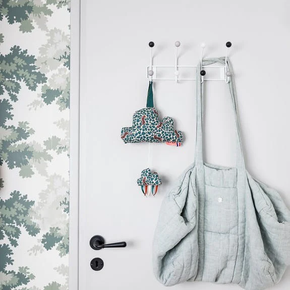Ce petit coussin musical très chic et graphique peut également être accroché au berceau du petit, ou même simplement posé à l’intérieur du lit bébé.