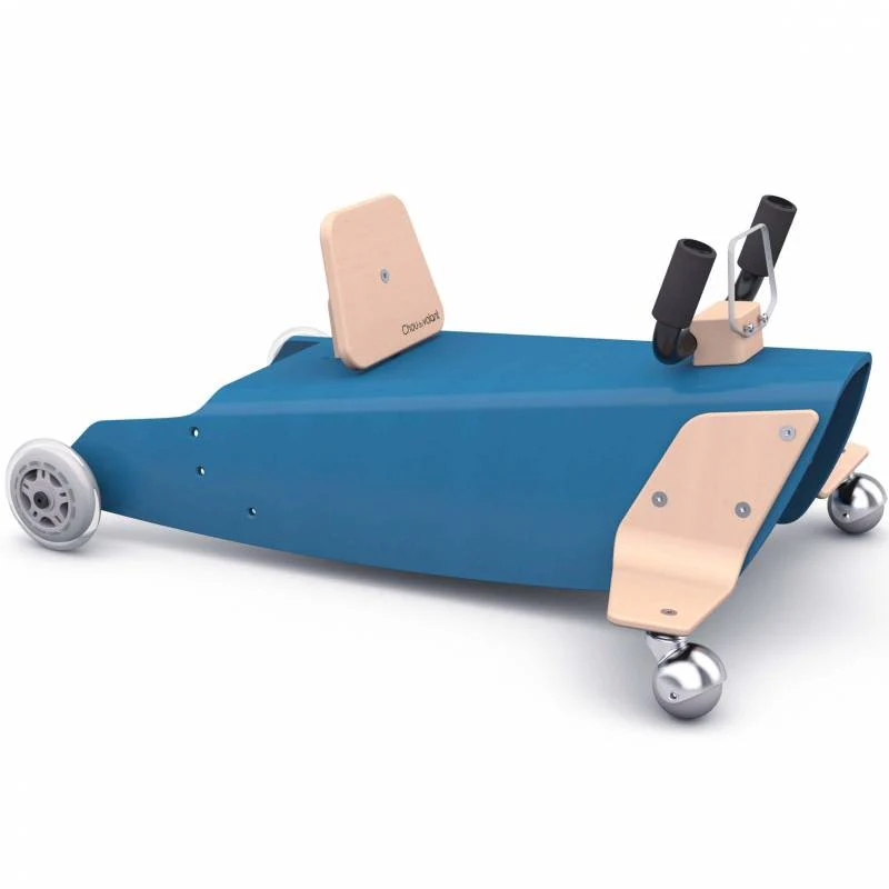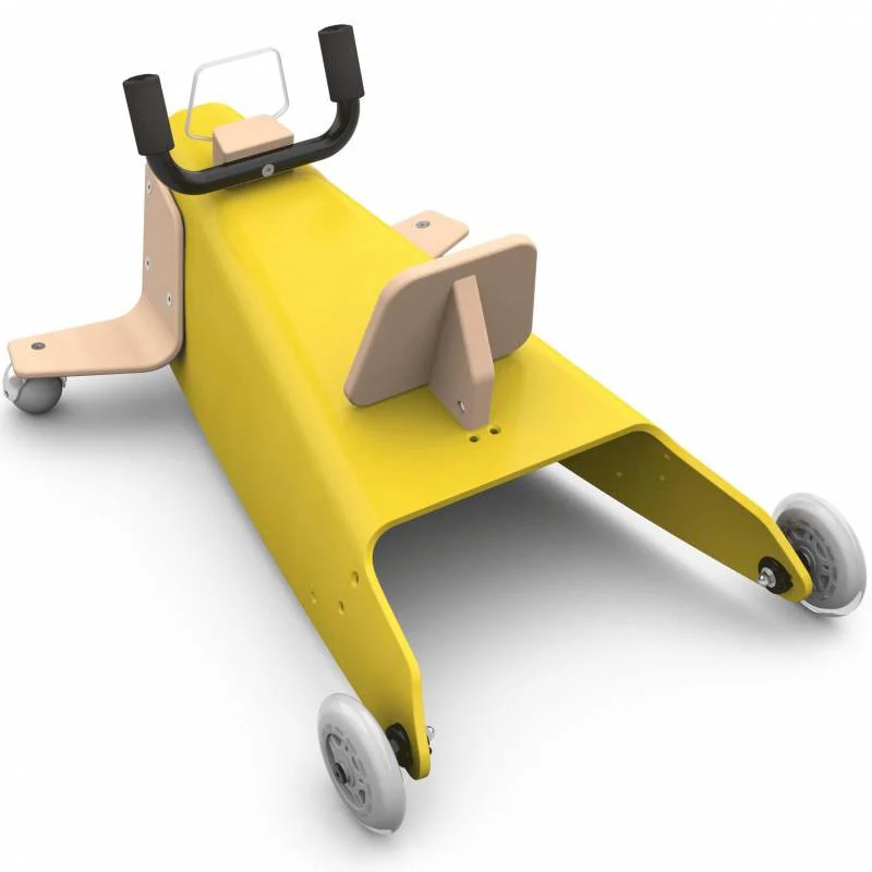 – Deux roulettes pivotantes à 360° (autorisant une très grande liberté de mouvement à l’enfant) et deux roues silencieuses avec roulements à billes de précision ne laissant pas de traces sur les sols et positionnées pour ne pas gêner le mouvement des jambes de l’enfant. Ce porteur peut s’utiliser à l’intérieur comme à l’extérieur, en raison de la qualité de ses 4 roues.