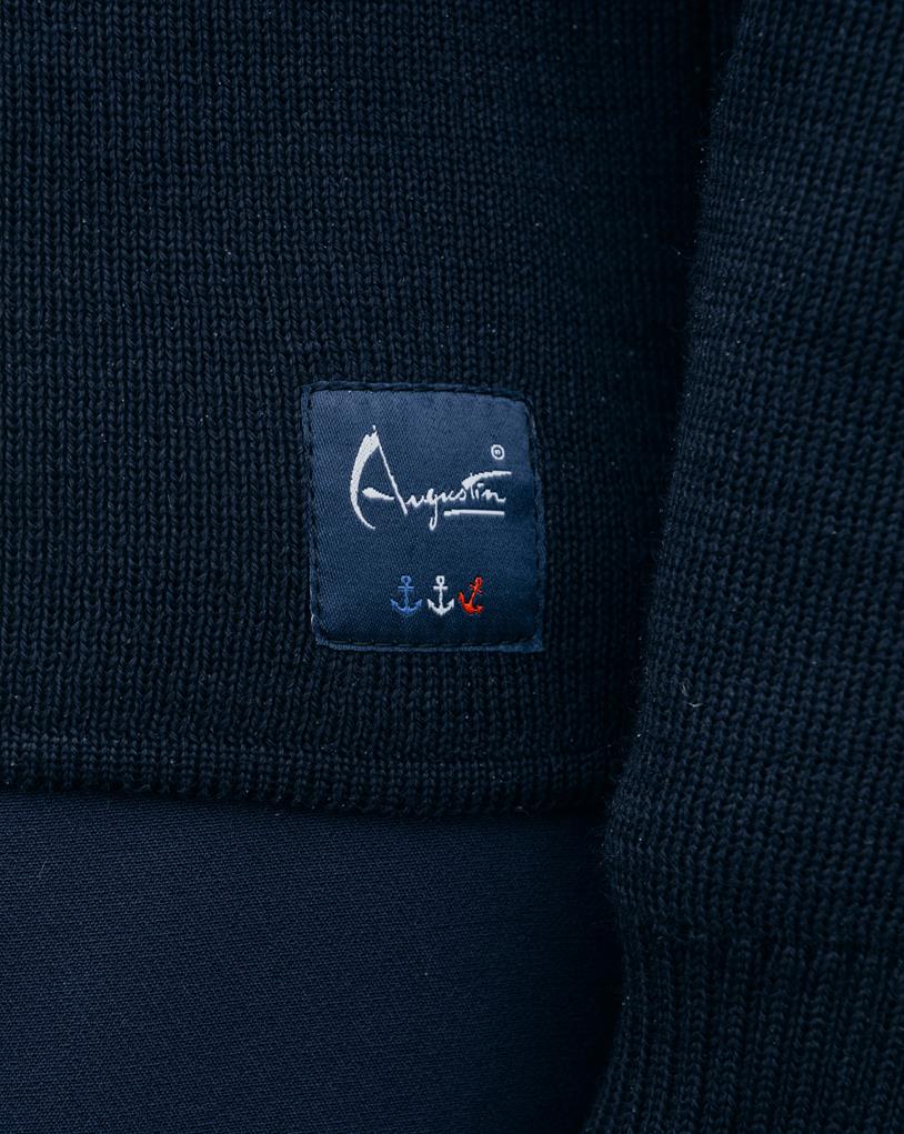 Laissez-vous séduire par cette collaboration exceptionnelle entre Baie des Caps et Augustin, où le traditionnel pull marin bleu marine en pure laine vierge se réinvente grâce à des coudières originales inspirées des motifs iconiques des chaussettes Augustin.