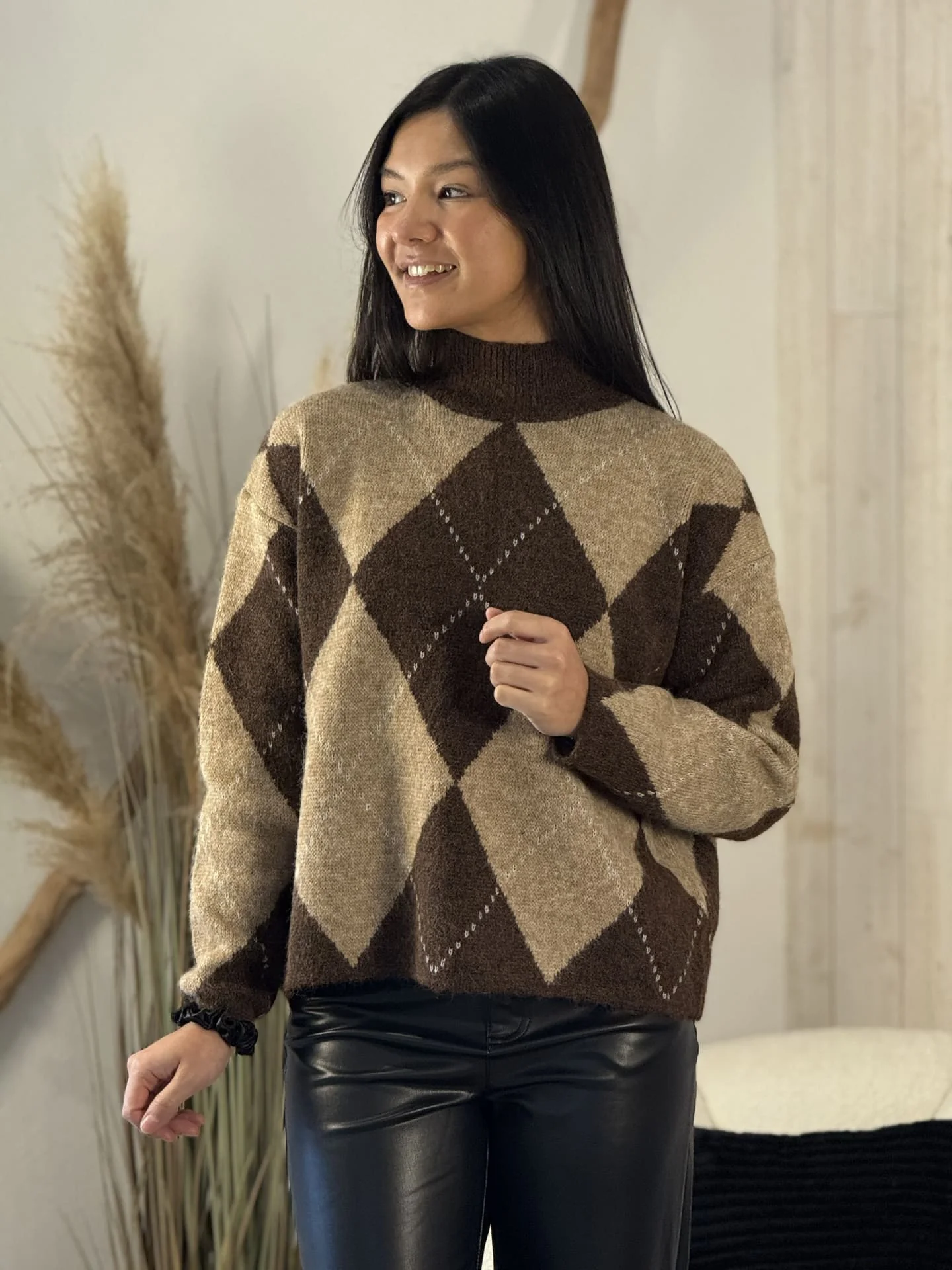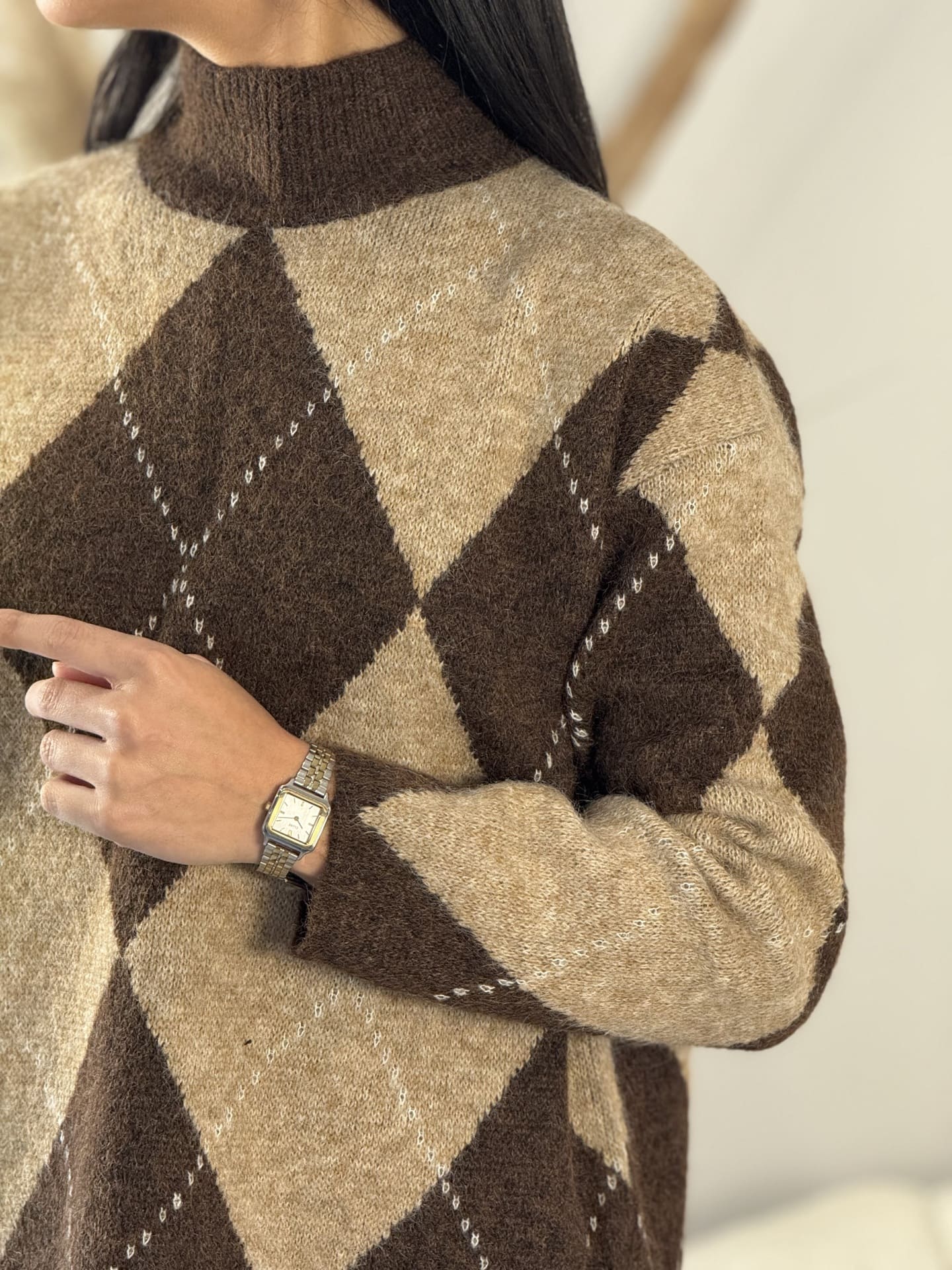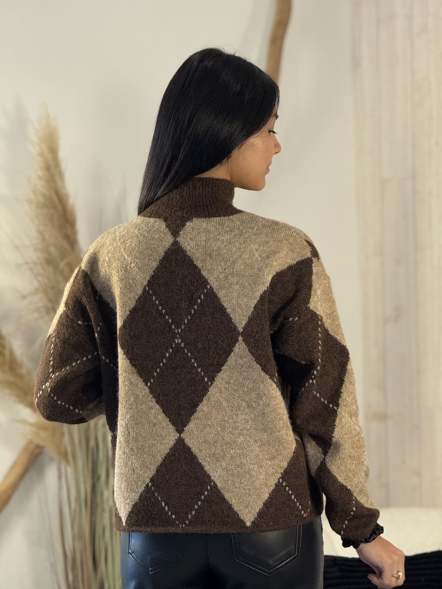 - Pull à ml en laine à grands carreaux