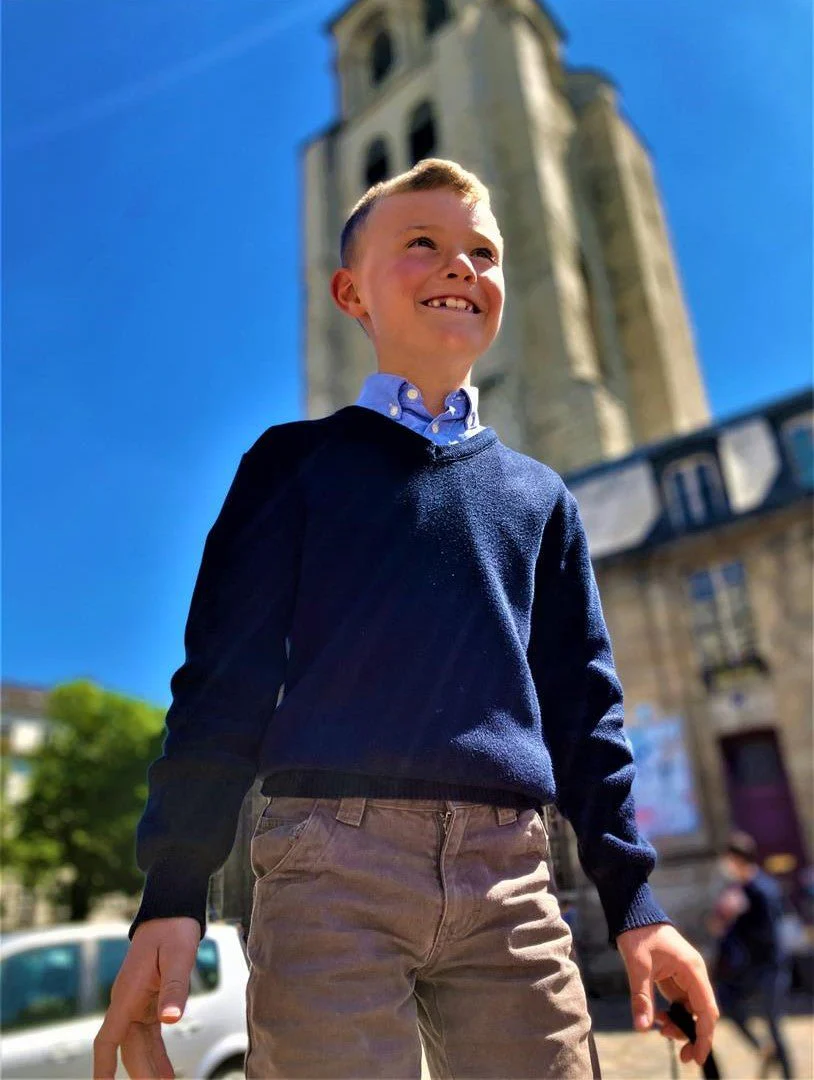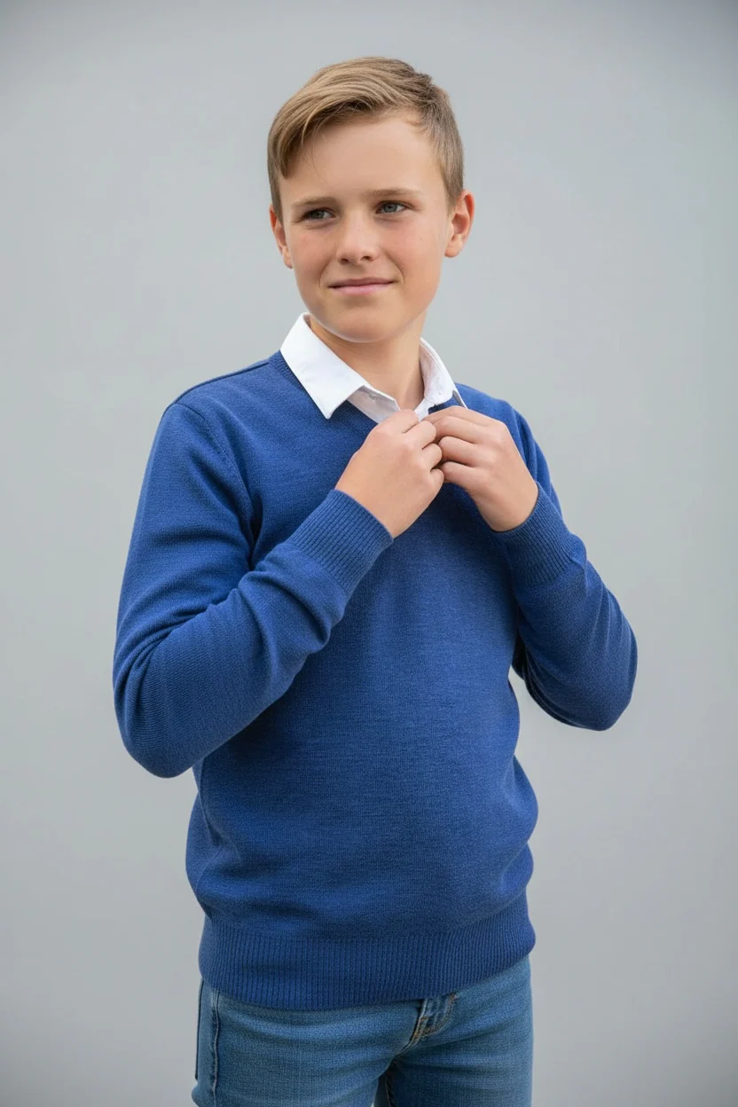 Voilà un excellent pull d’uniforme ou de cérémonie ! Fabriqué dans notre atelier en coton mélangé, dans la même maille que nos pulls marins. Parfait pour l’école, il est doux, facile à laver. Enfin un pull qui se tient !