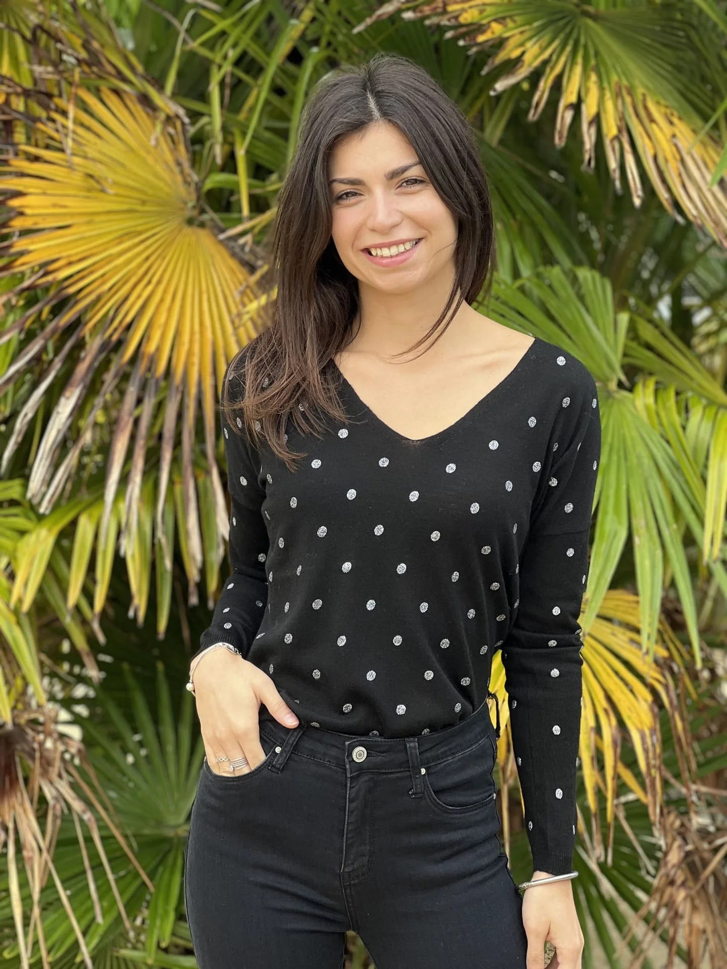 Pull à ml col v imprimé pois Taille : Mathilde mesure 1m65, Justine mesure 1m69. Elles portent la taille Taille unique pour ce modèle. Taille : Taille unique Convient de la taille 36 à 42 Composition & entretien : 8% LAINE 20% ACRYLIQUE 00% NYLON 52% POLYESTER Lavage à la main conseillé Besoin d’un conseil […]