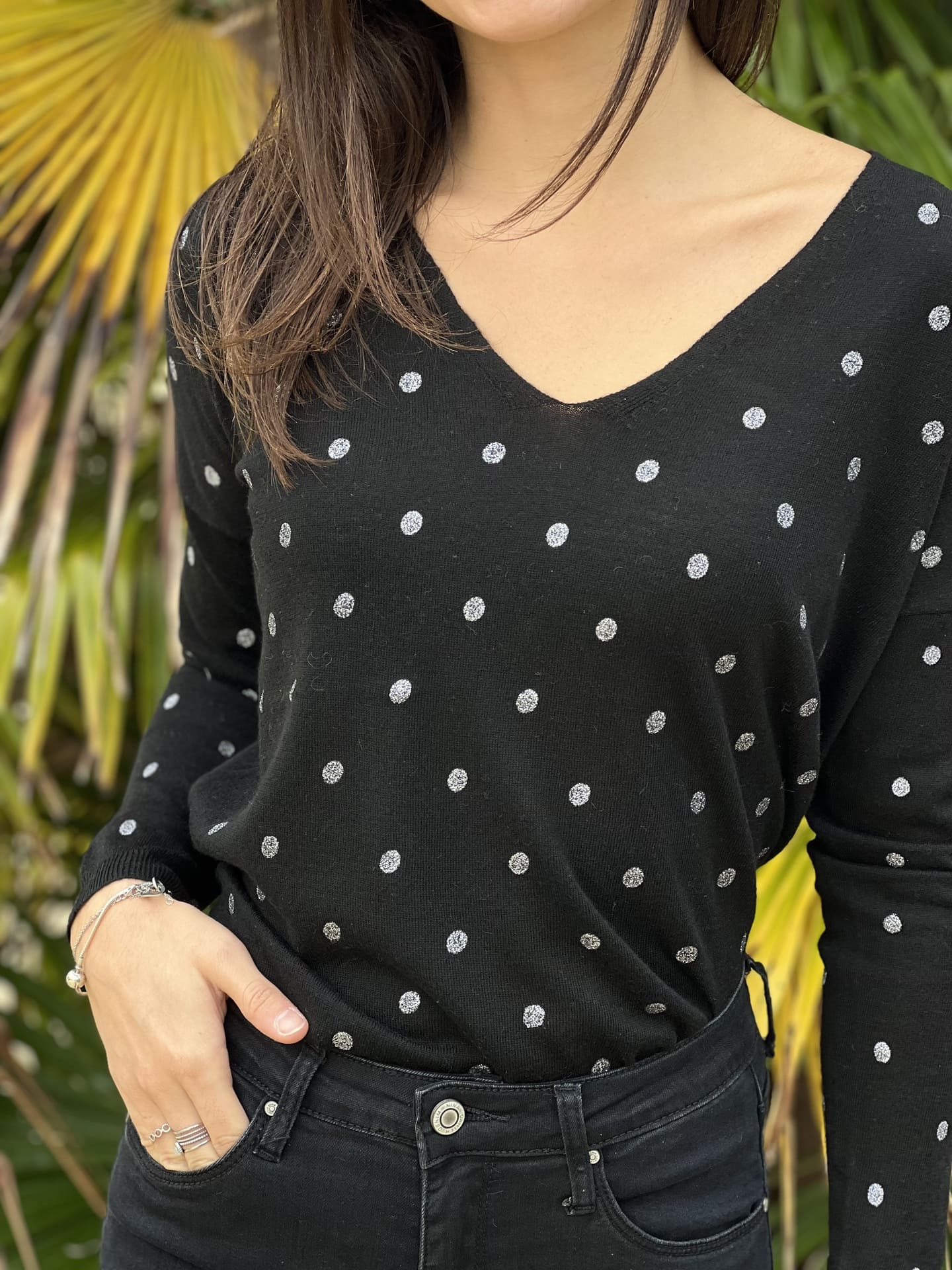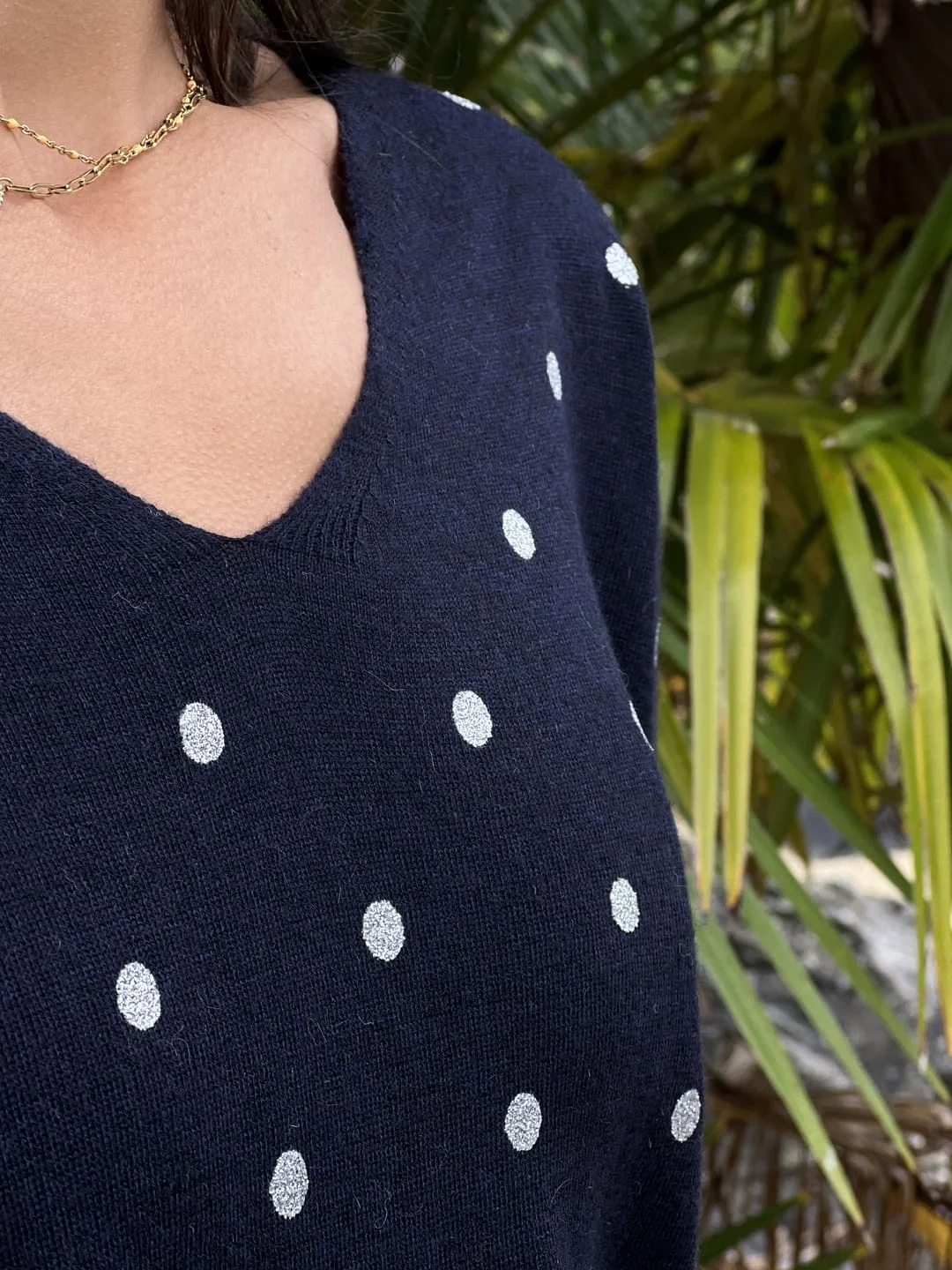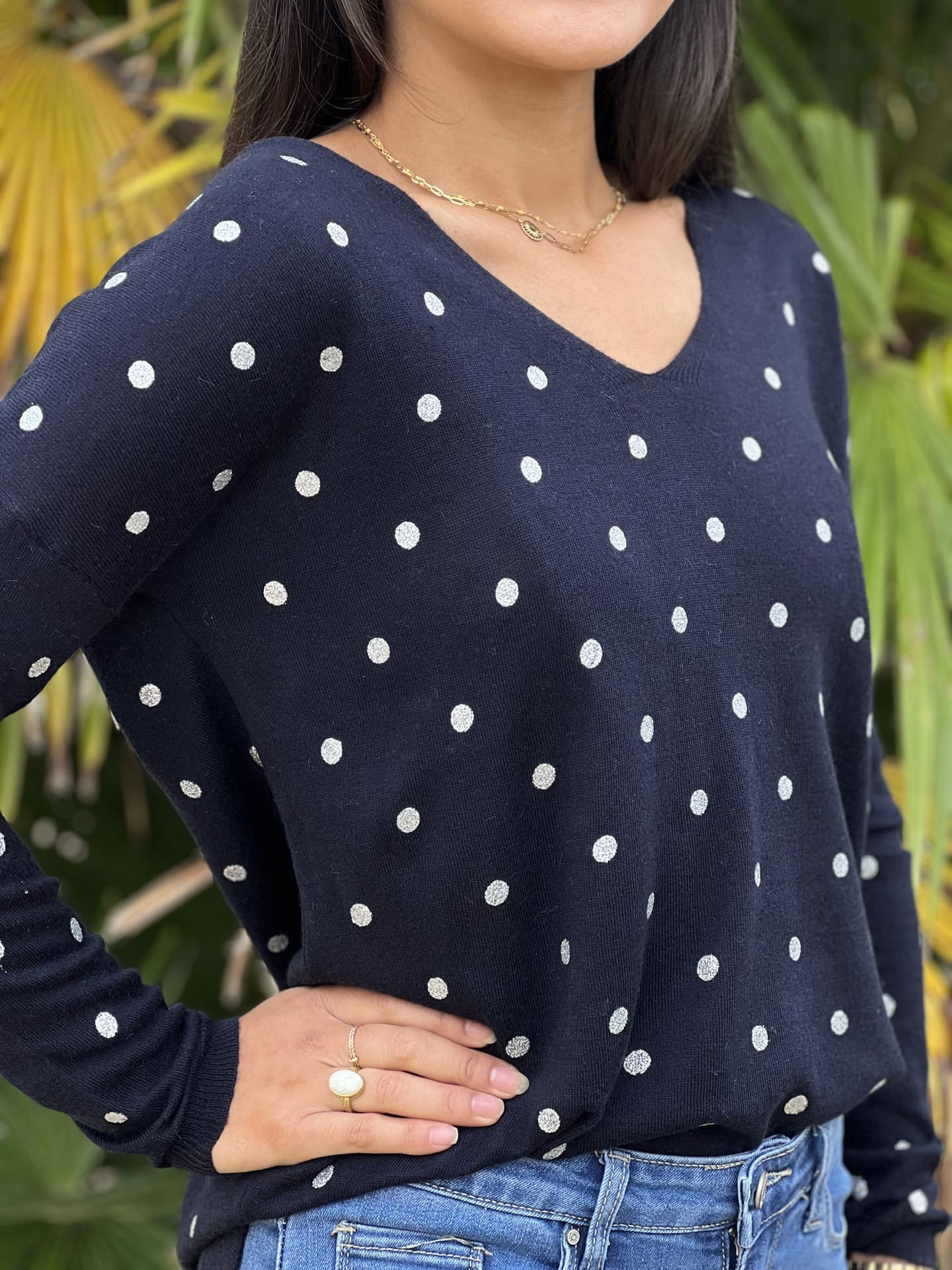 - Pull à ml col v imprimé pois
