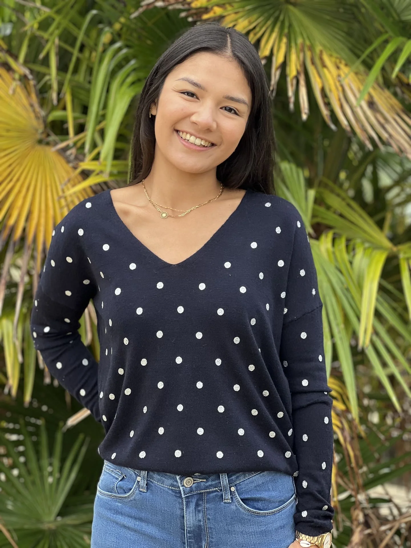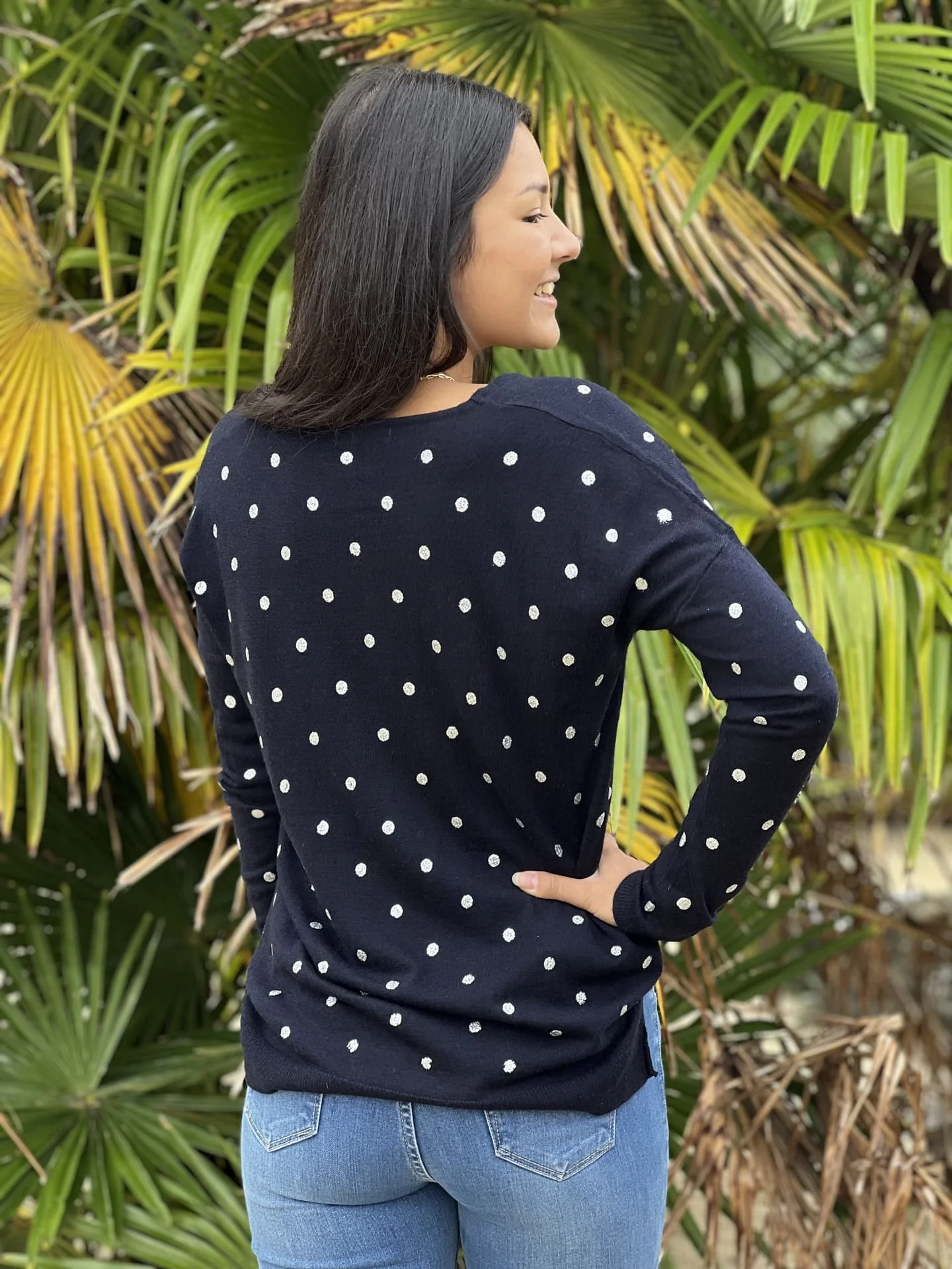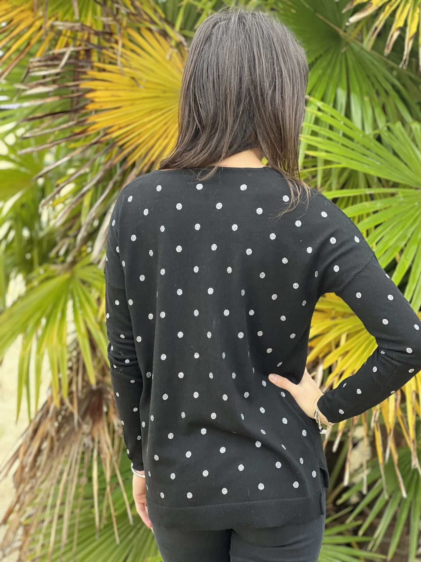 - Pull à ml col v imprimé pois