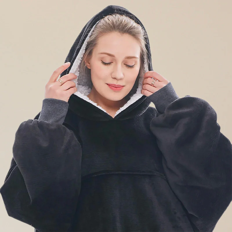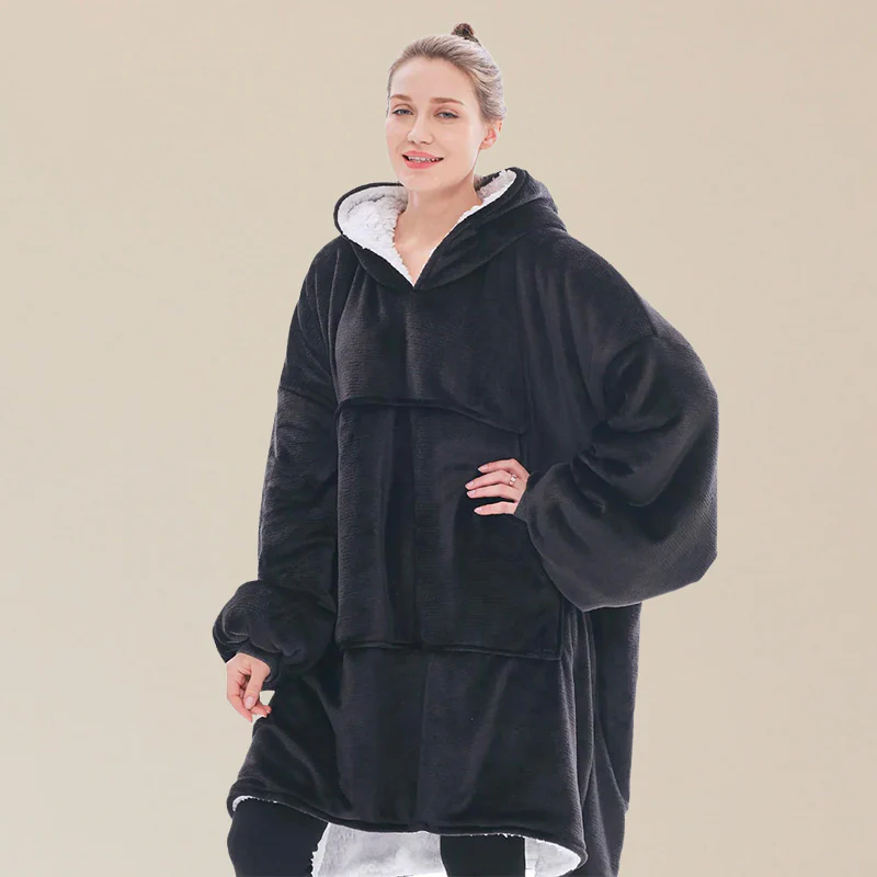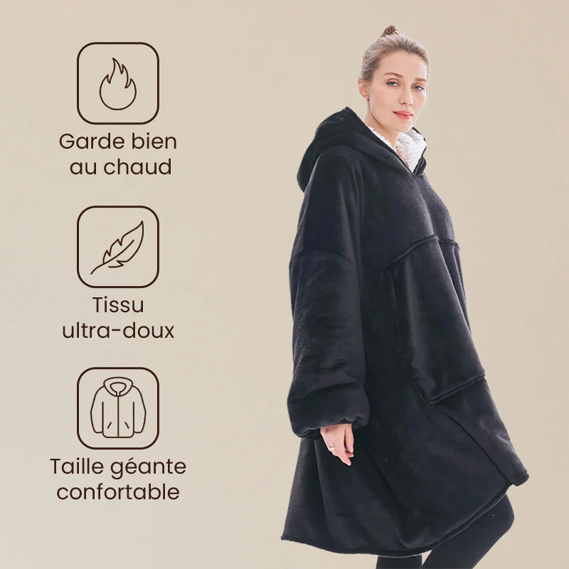 Fini les soirées froides où le plaid glisse des épaules : ce pull couverture vous enveloppe d’une chaleur constante tout en laissant vos mains libres. Sa coupe oversize et sa capuche épaisse offrent un confort total, que ce soit pour télétravailler, lire ou regarder un film.