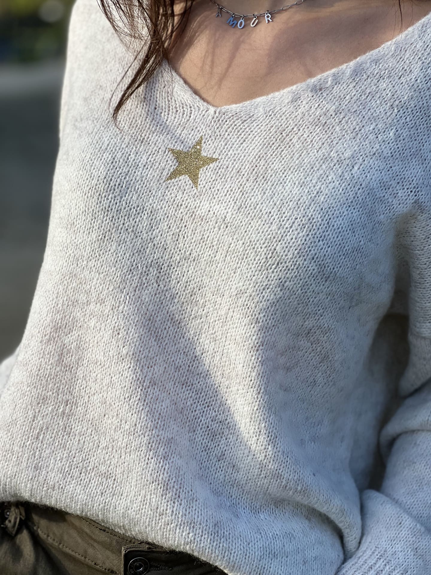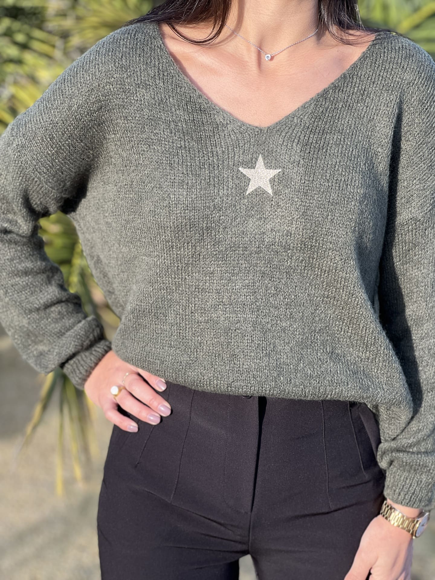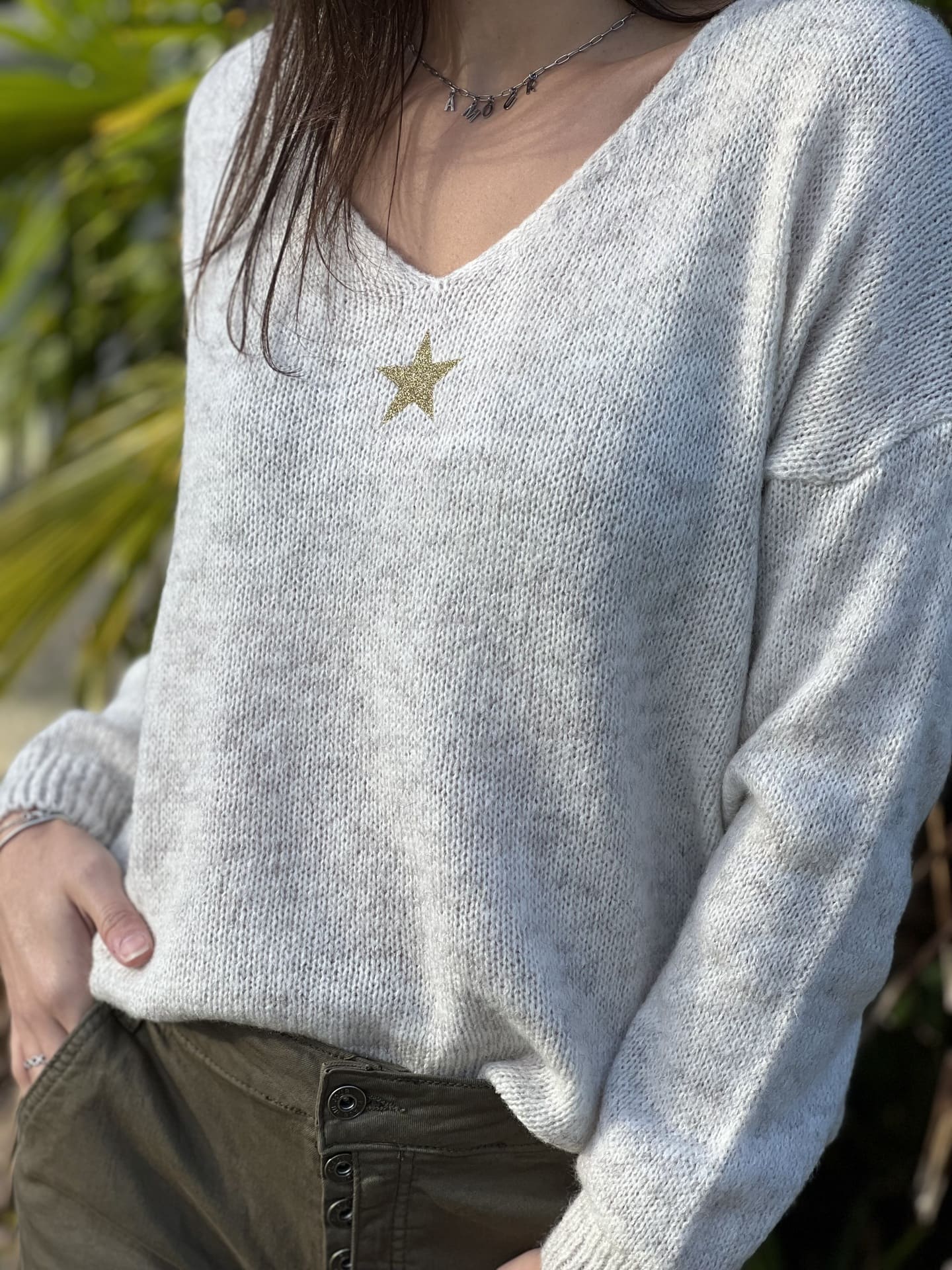- PULL À ML COL V + MOTIF PETITE ÉTOILE