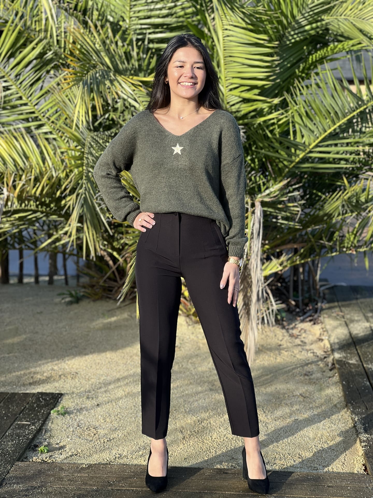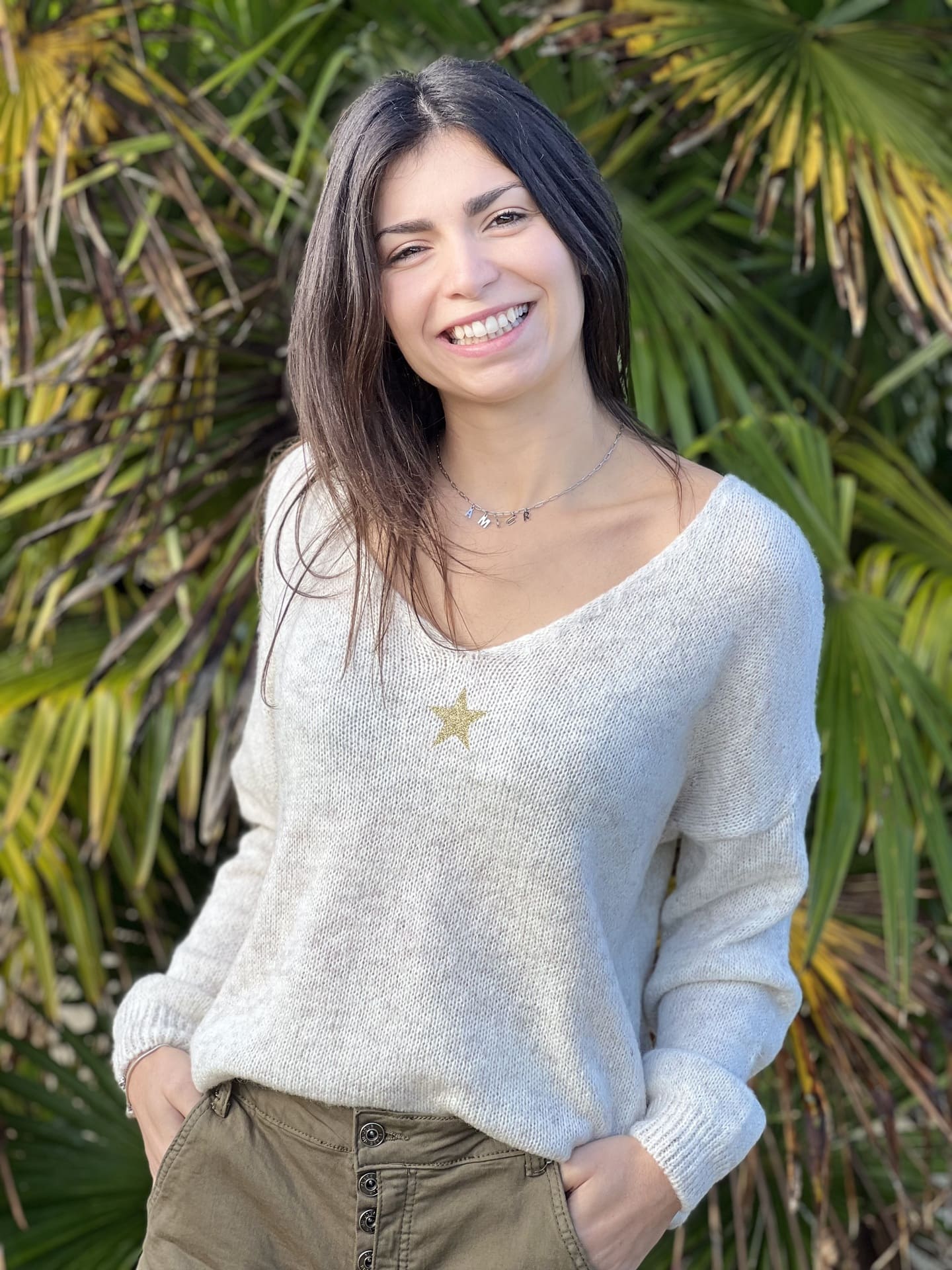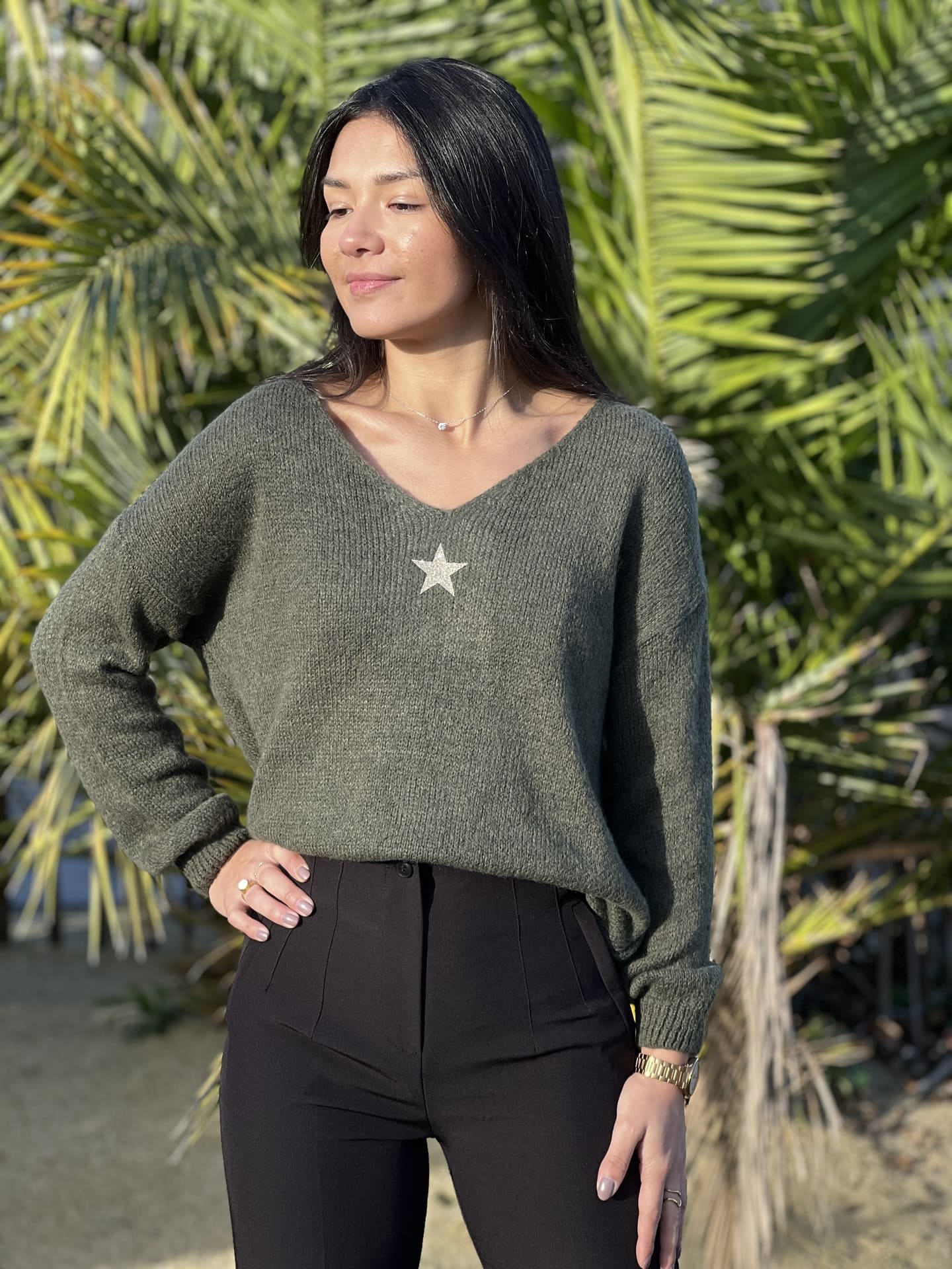 - PULL À ML COL V + MOTIF PETITE ÉTOILE