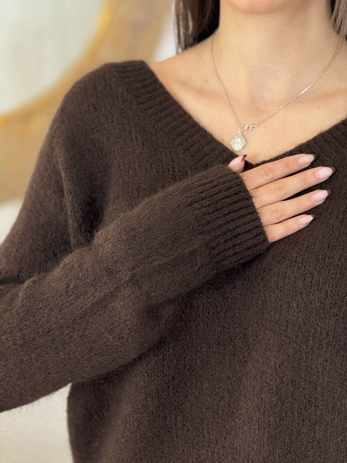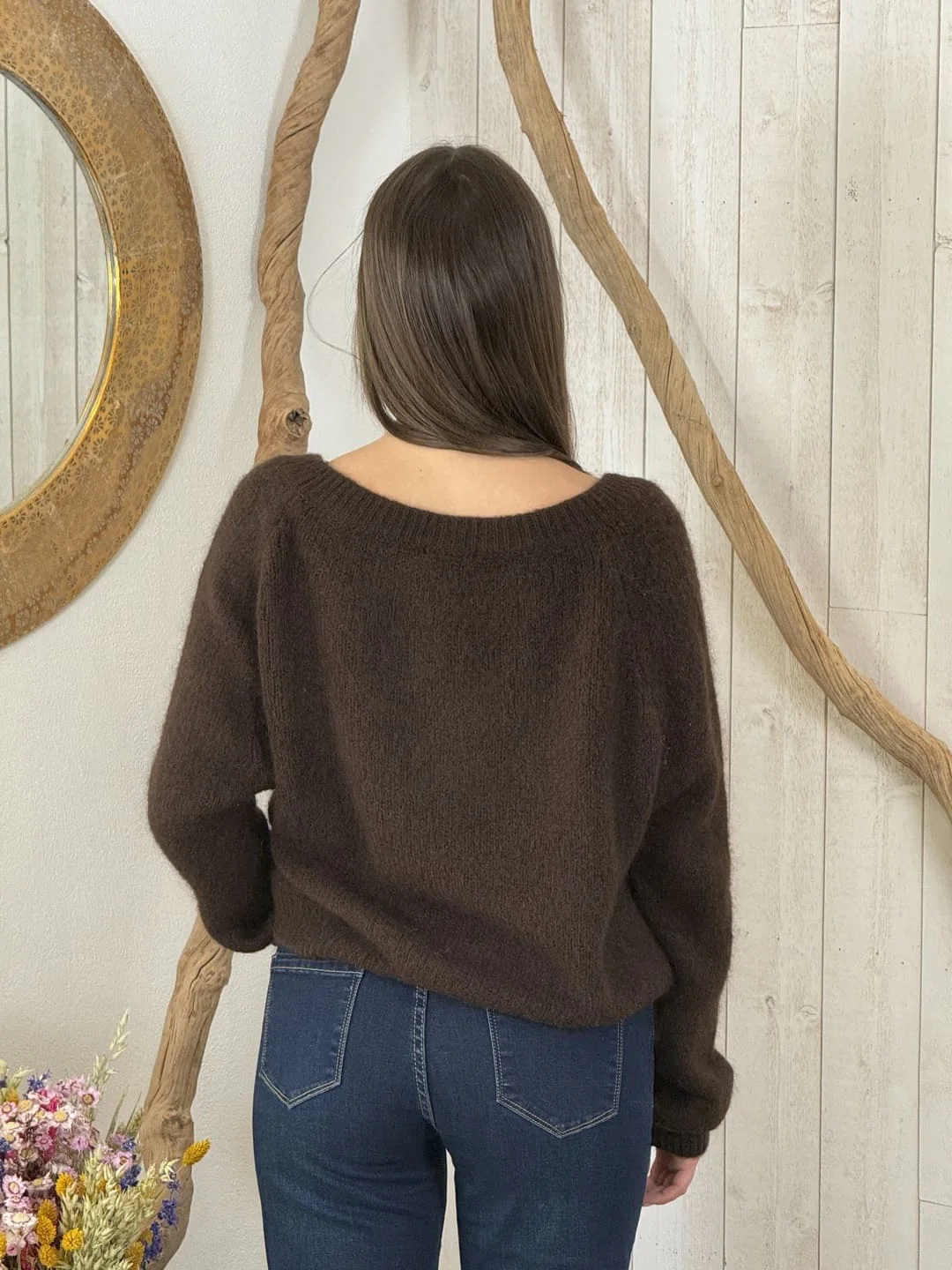 - PULL À ML COL V MOHAIR TOUT DOUX