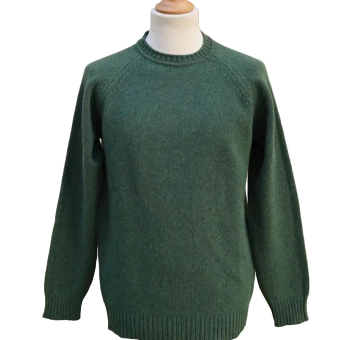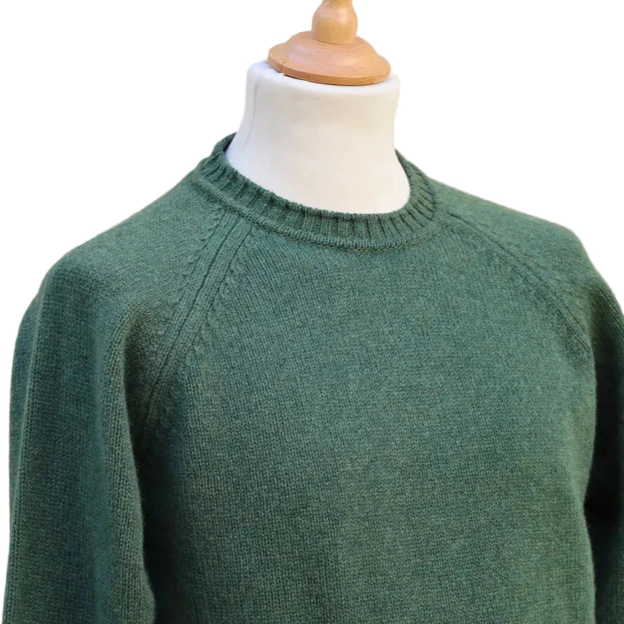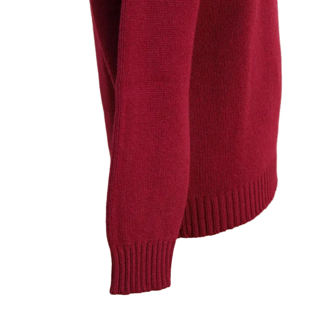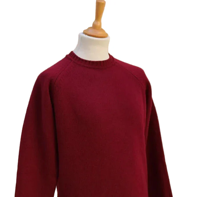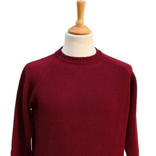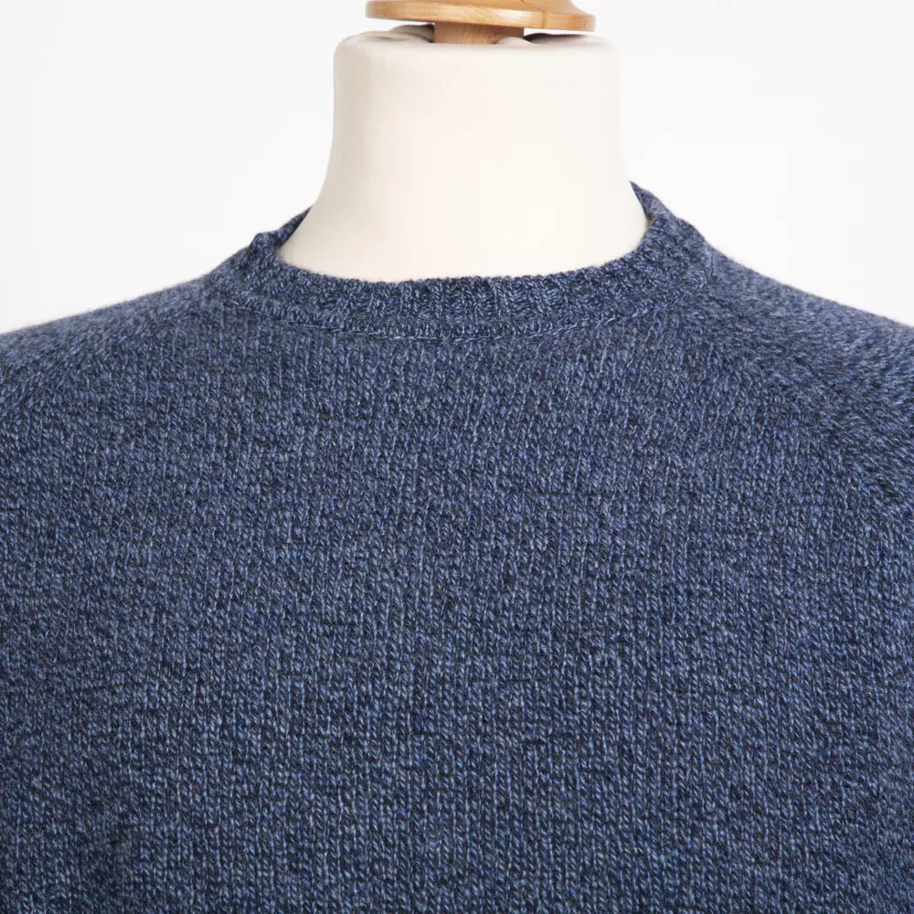 Tricoté en 4 fils, a partir d’une laine d’agneau « geelong » il dispose d’une coupe plus confort (manches raglan) que leur col rond classique.