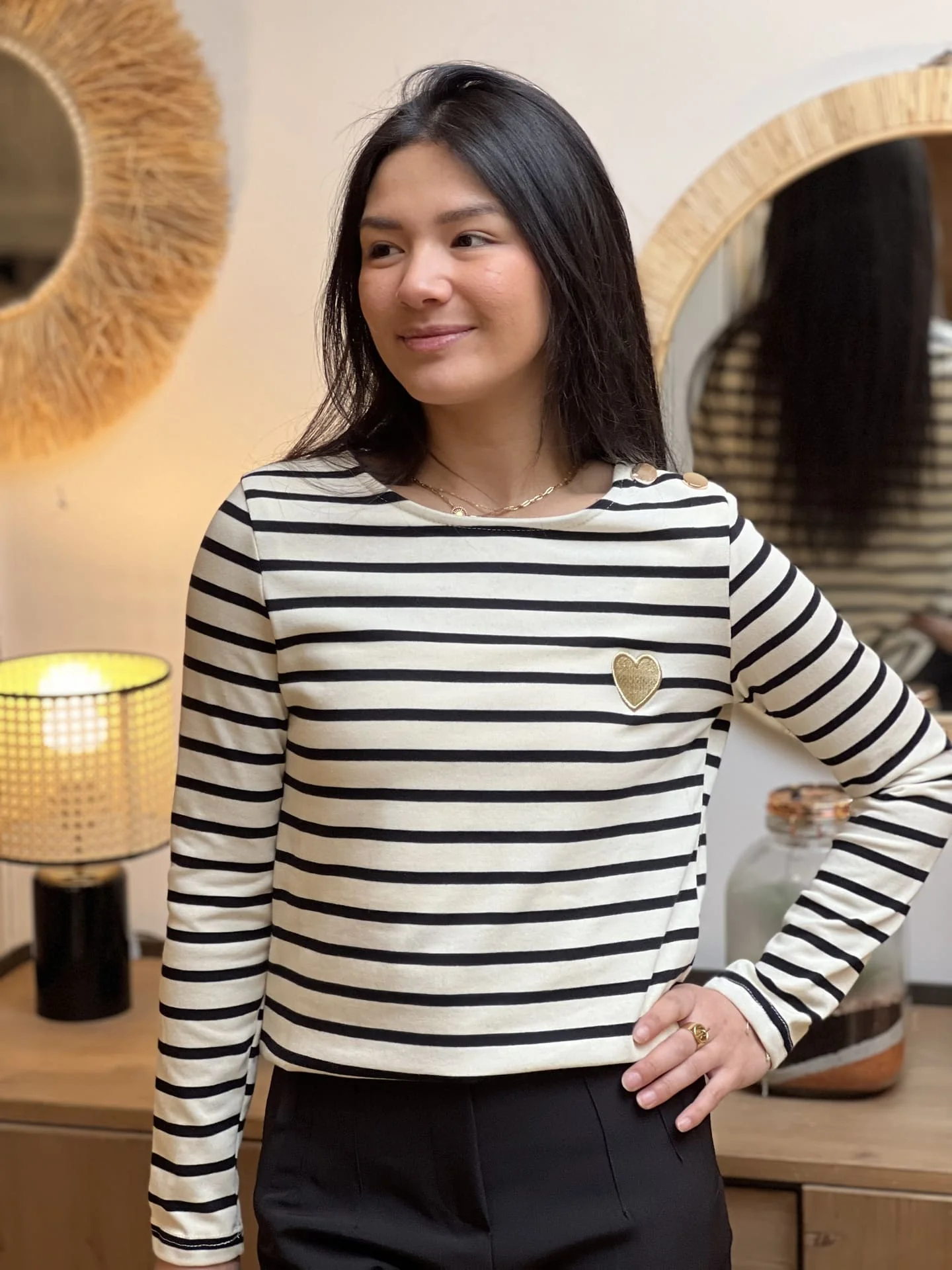 PULL MARINIERE BLEU MARINE BLANC CŒUR GOLD Taille : Justine mesure 1m69 et Mathilde mesure 1m65. Elles portent la taille S/M pour ce modèle. Taille : S/M (36-38) et M/L (38-40) Composition & entretien : 100% COTON Lavage à la main conseillé Besoin d’un conseil ? Consultez notre foire aux questions ou contactez-nous via notre […]