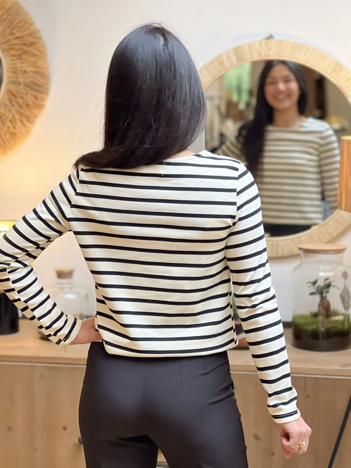 Justine mesure 1m69 et Mathilde mesure 1m65. Elles portent la taille S/M pour ce modèle.
