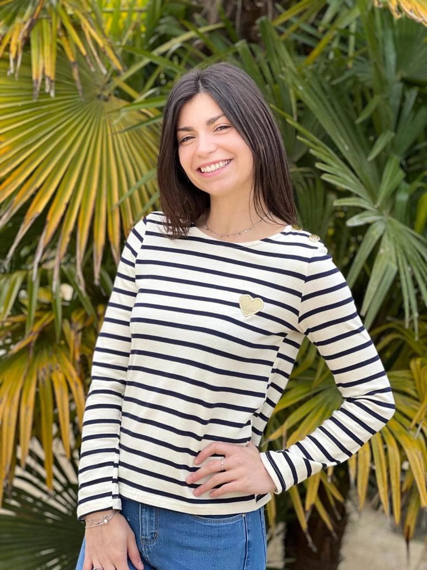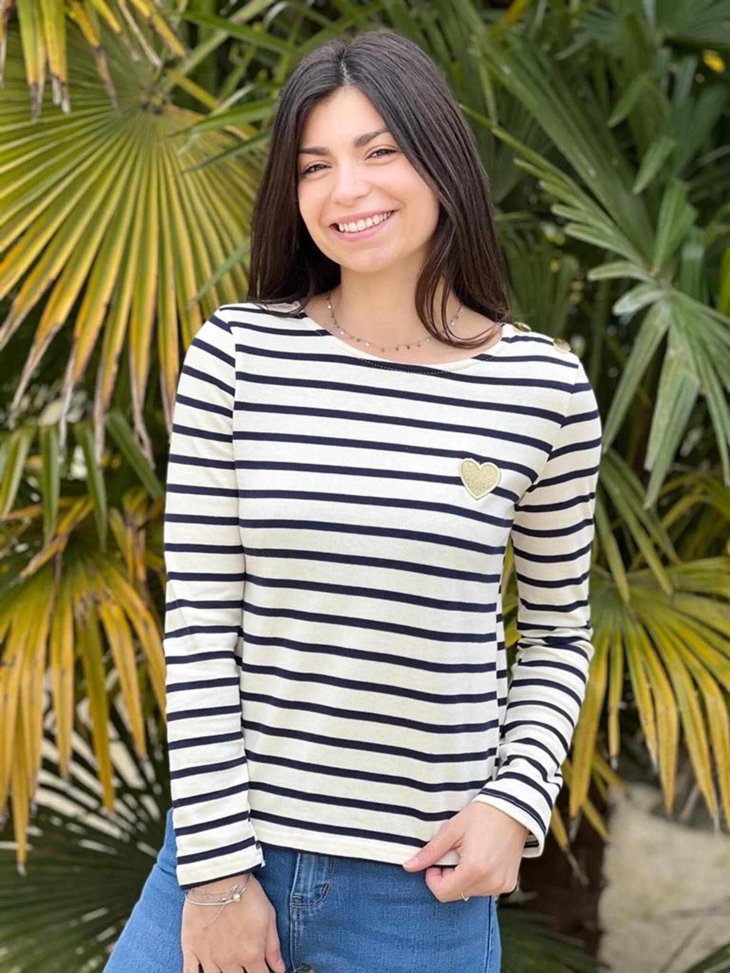 - PULL MARINIERE BLEU MARINE BLANC CŒUR GOLD