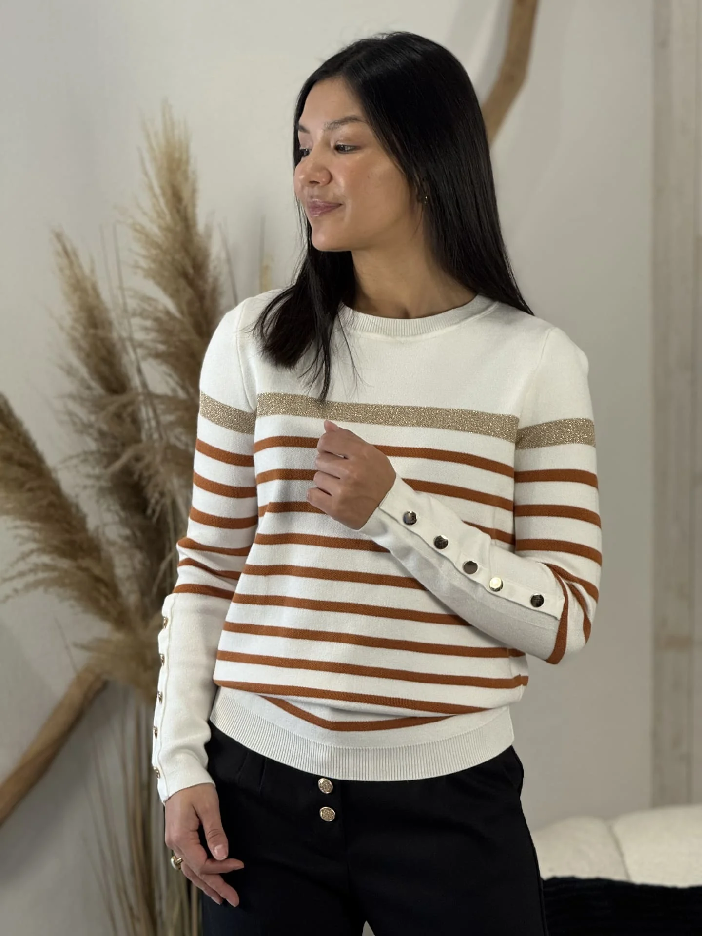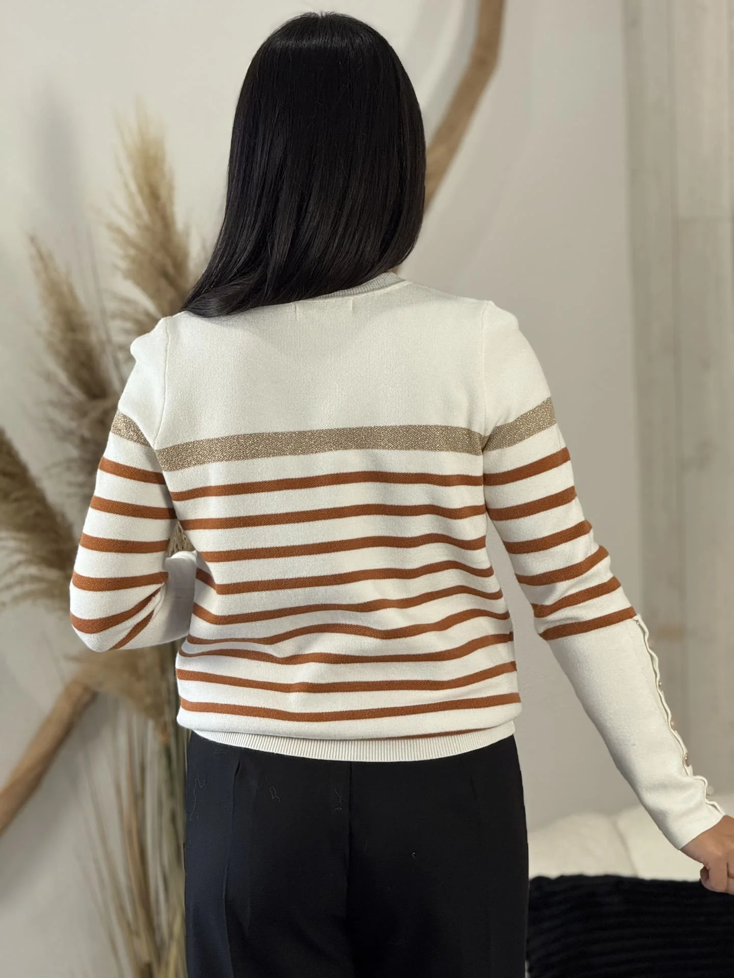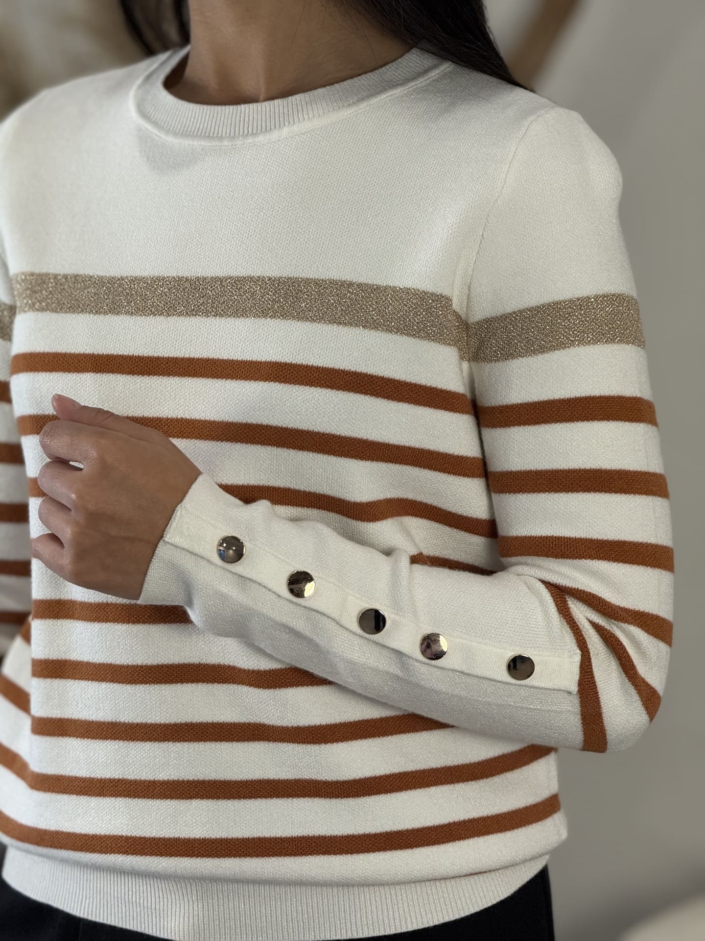 - PULL COL ROND MARINIÈRE AVEC BANDE GOLD – BOUTONS SUR MANCHE