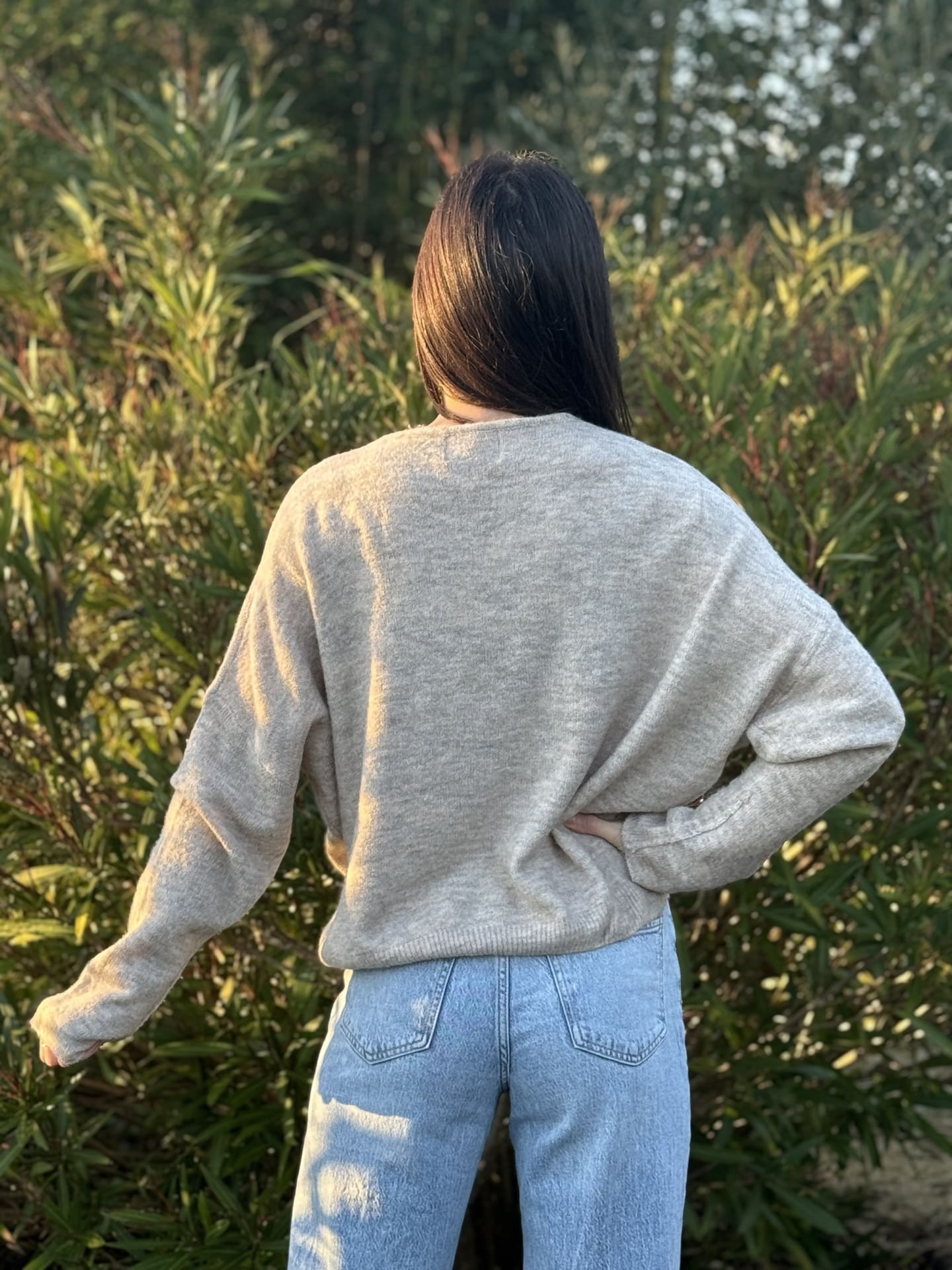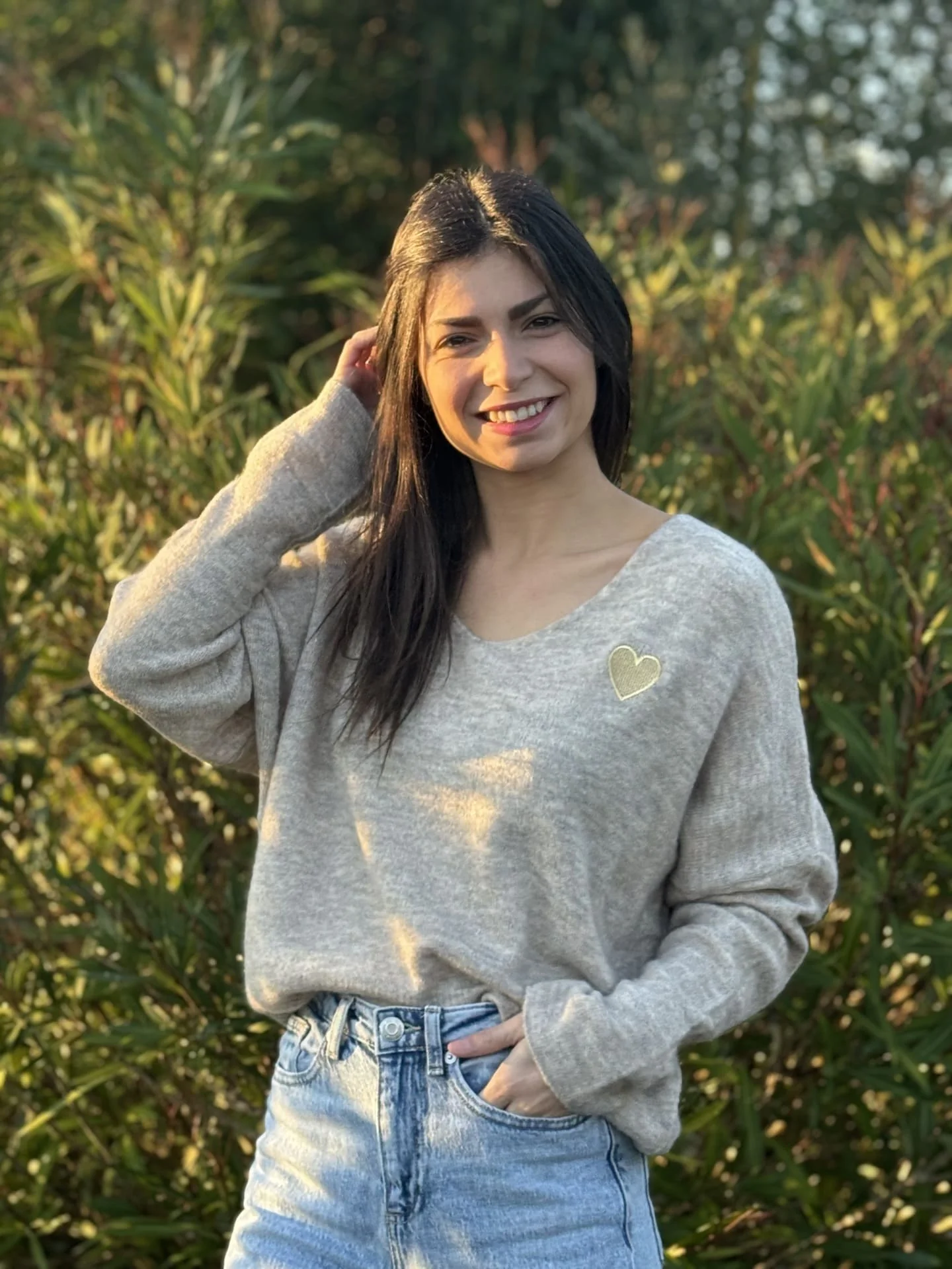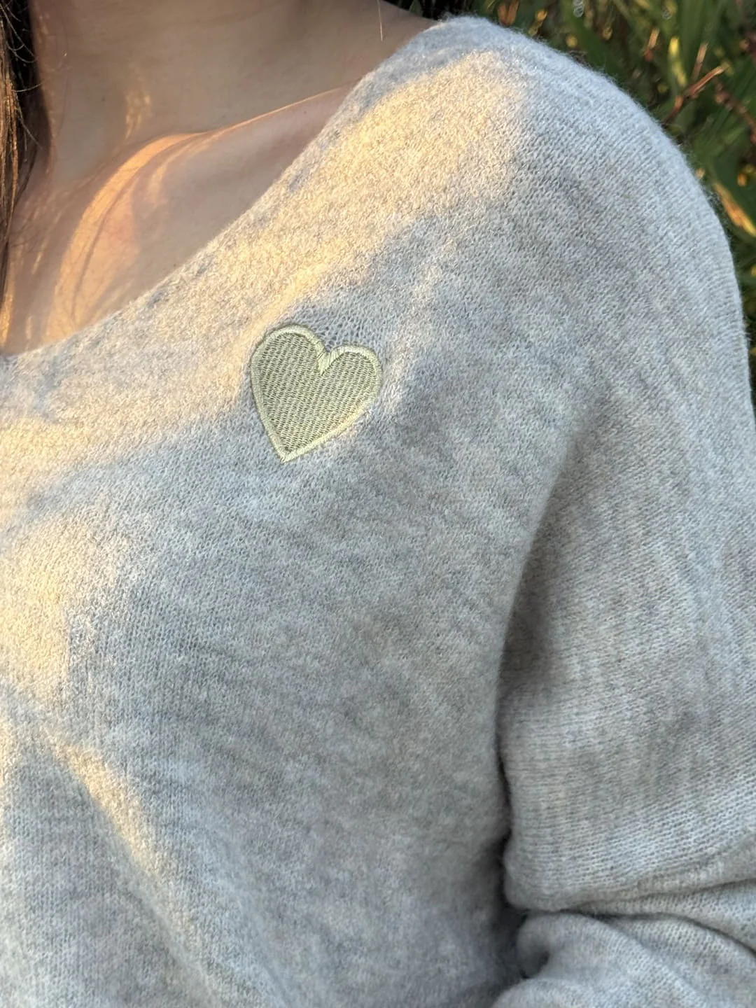 - Pull à ml col v avec broderie cœur
