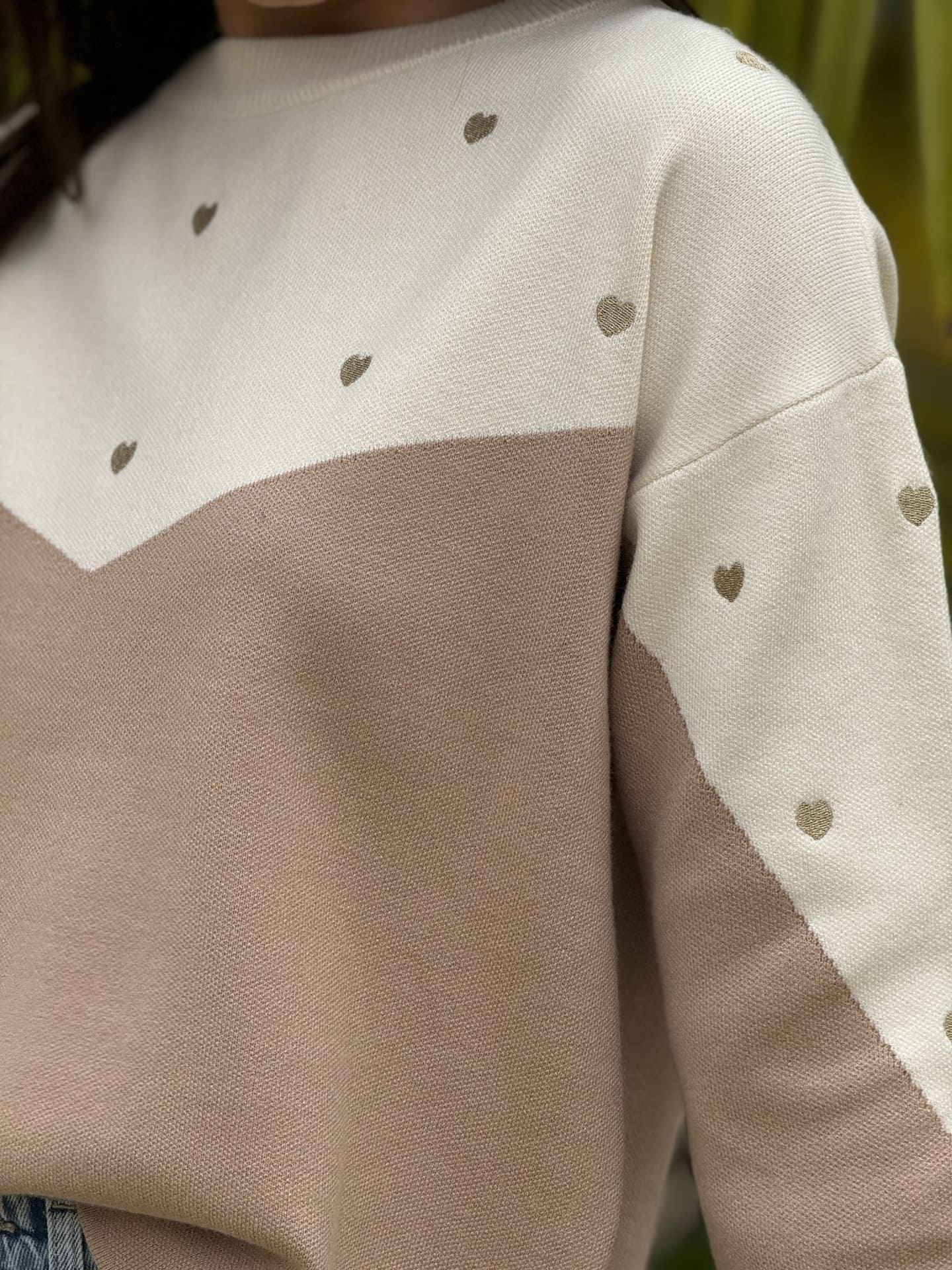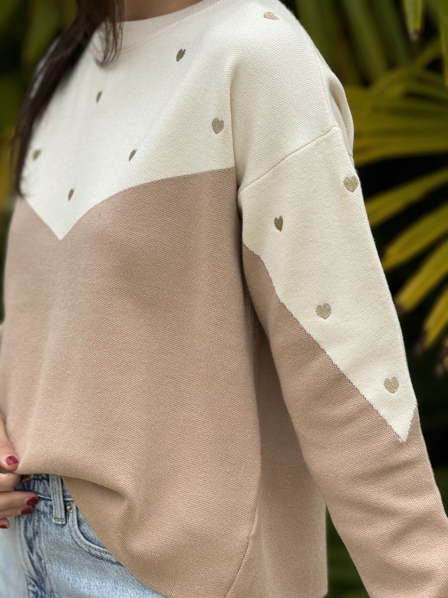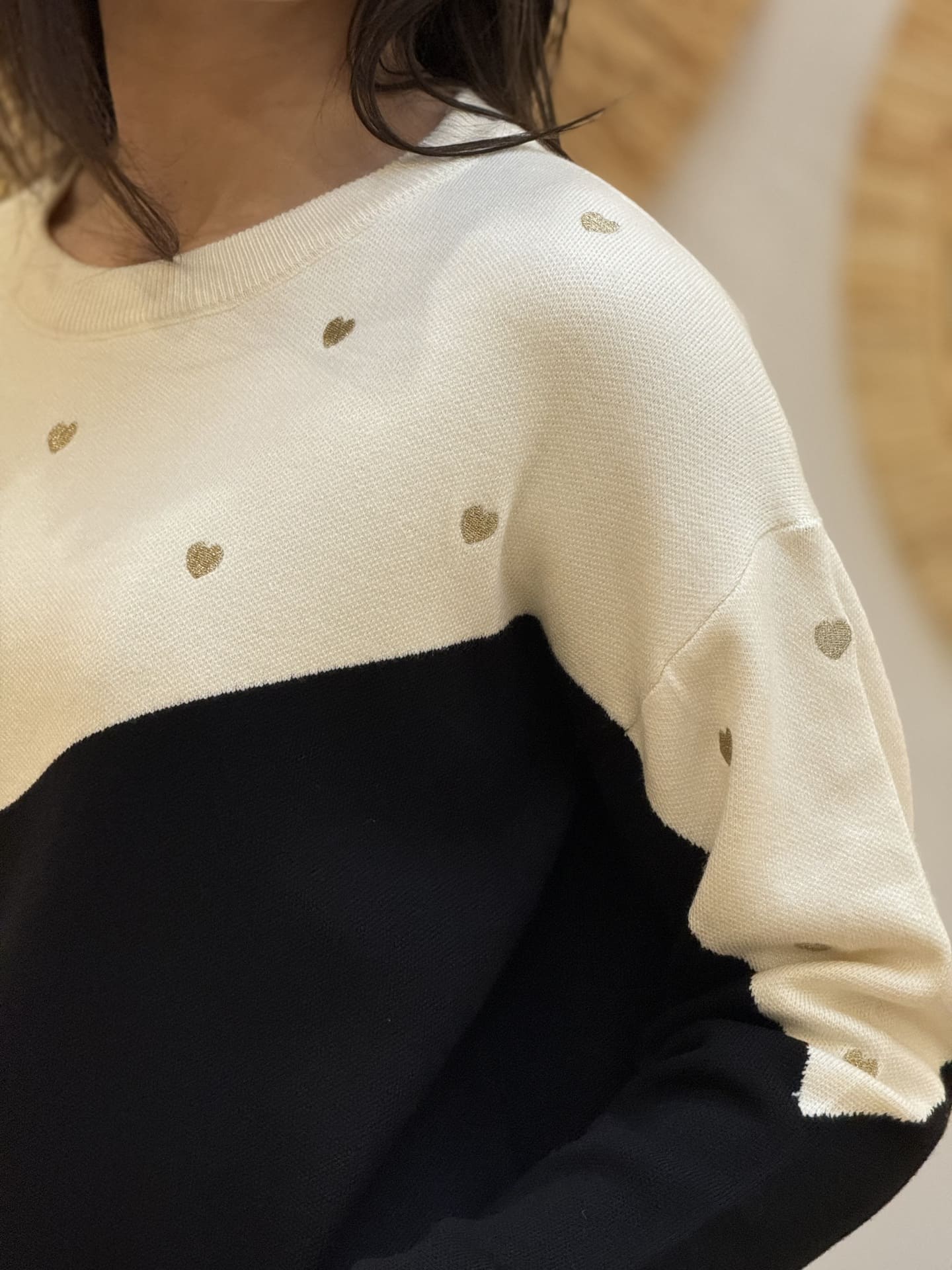 - PULL À ML COL ROND IMPRIMÉ PETITS CŒUR GOLD