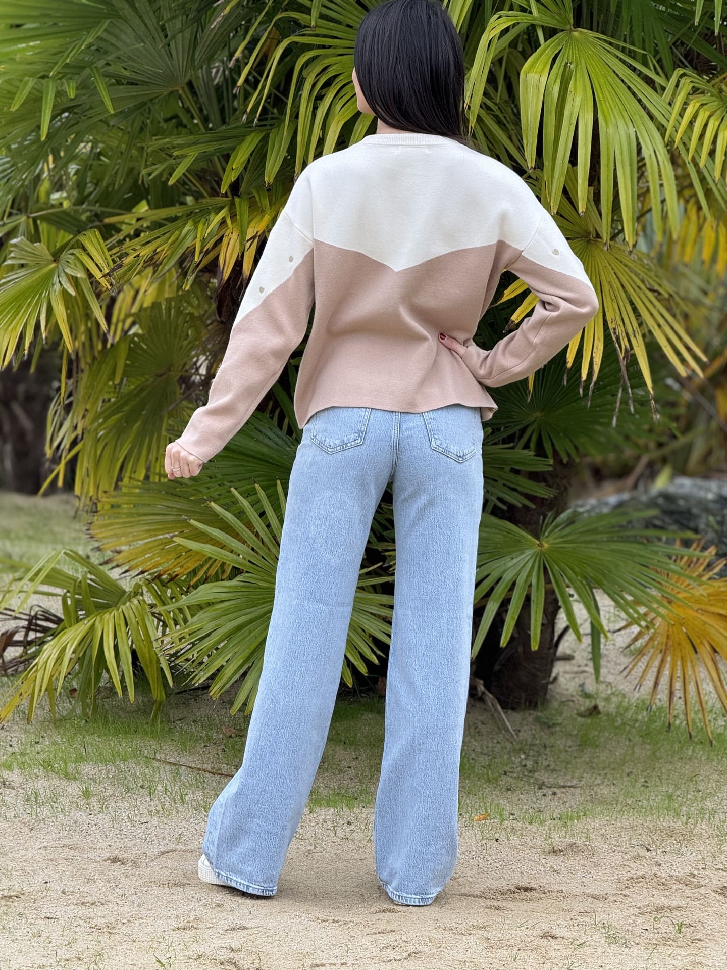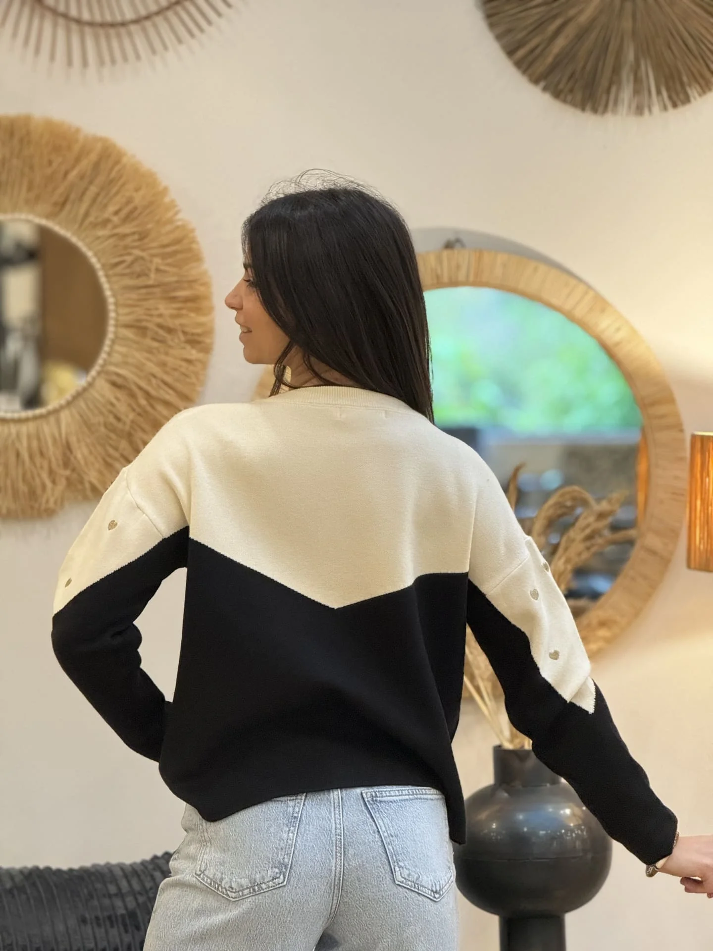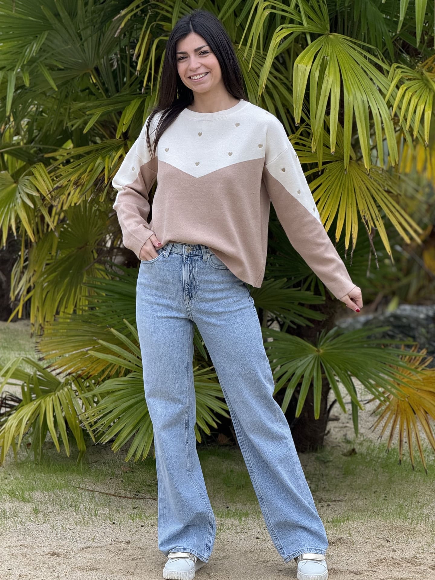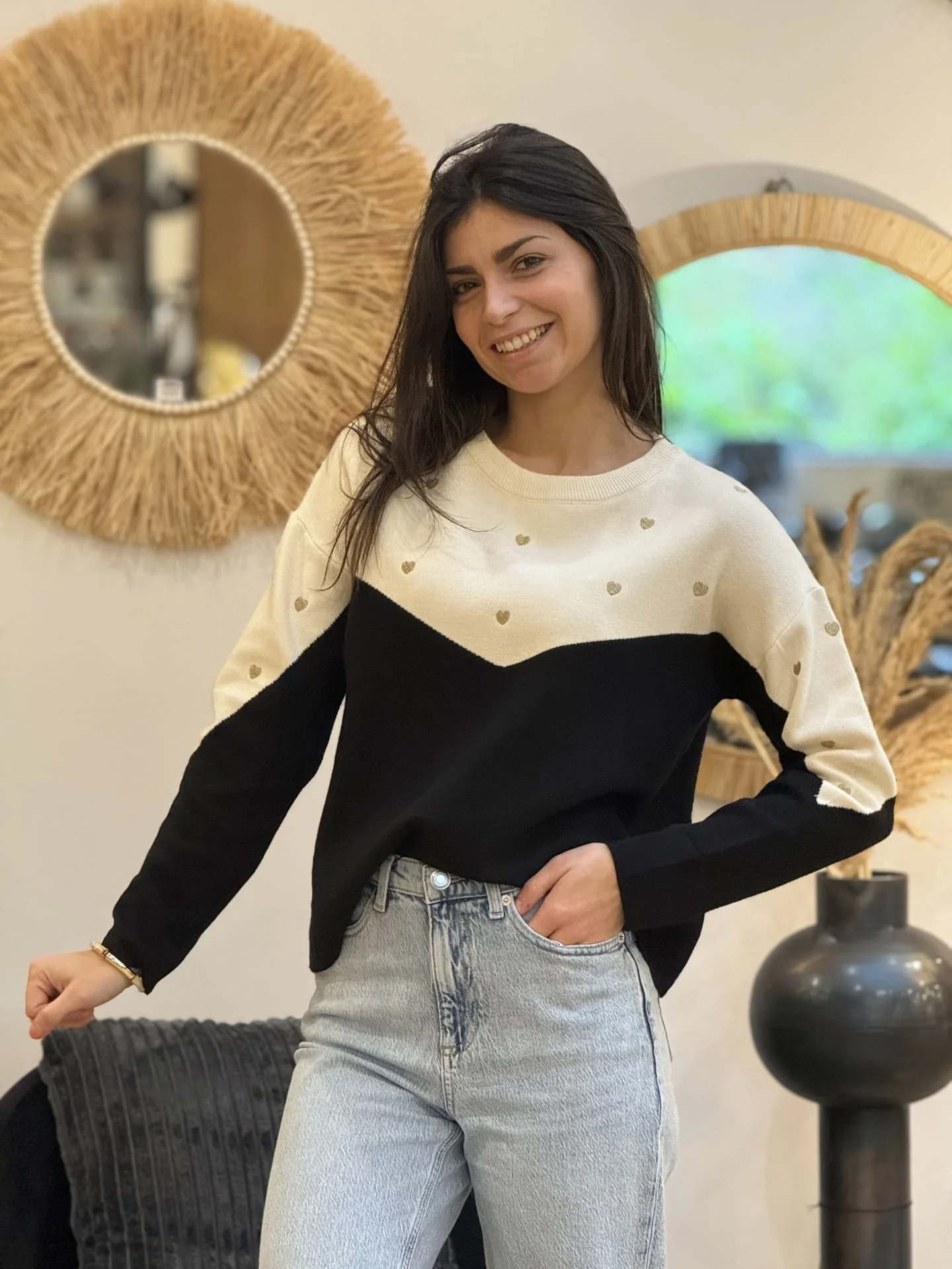 - PULL À ML COL ROND IMPRIMÉ PETITS CŒUR GOLD