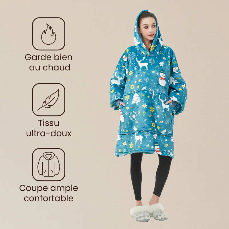 Pratique et mixte, il s’enfile comme une couverture à manches et s’adapte à toutes les morphologies.