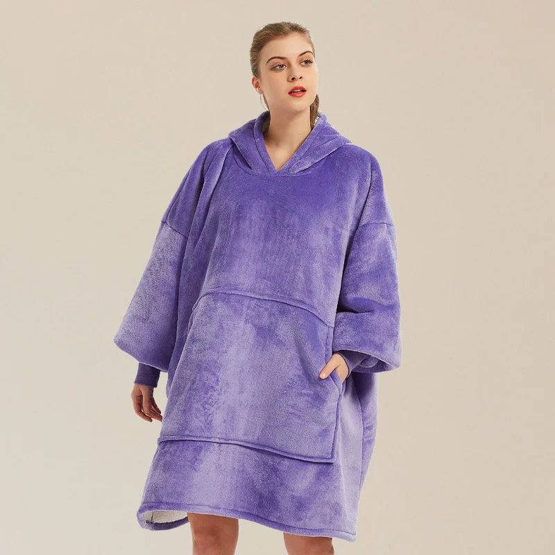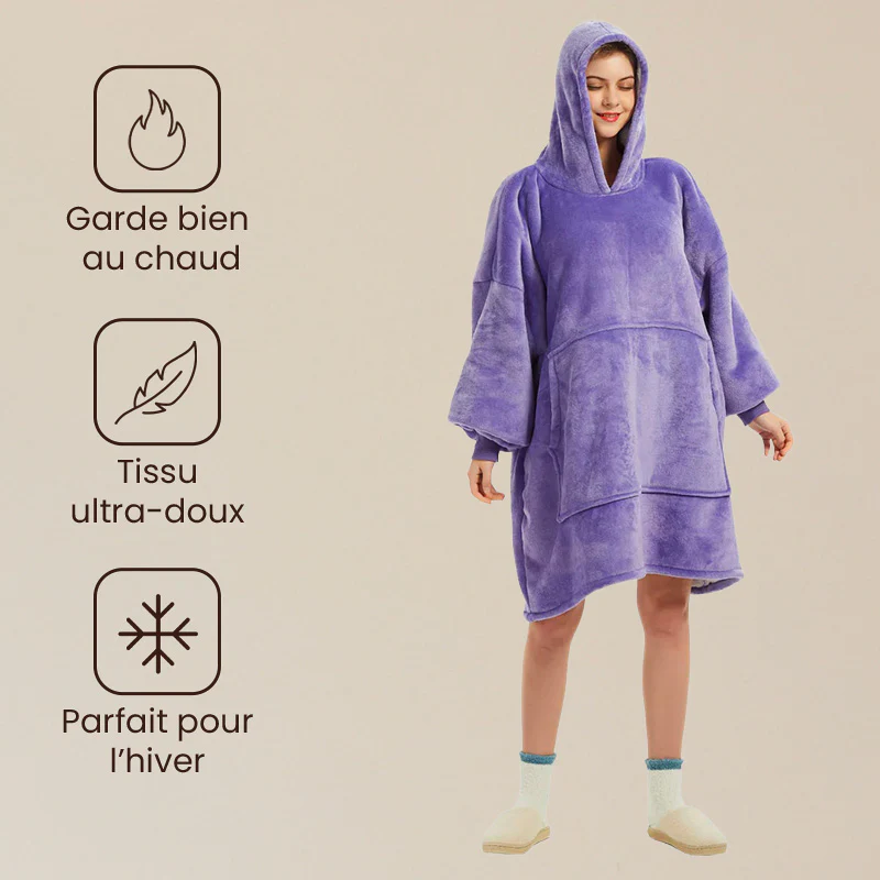 Le toucher est moelleux, presque soyeux. L’intérieur duveteux garde la chaleur au cœur des fibres, sans effet étouffant. Avec sa capuche protectrice et sa grande poche ventrale, il devient un allié parfait pour les soirées froides, les dimanches lents ou les pauses détente à la maison.