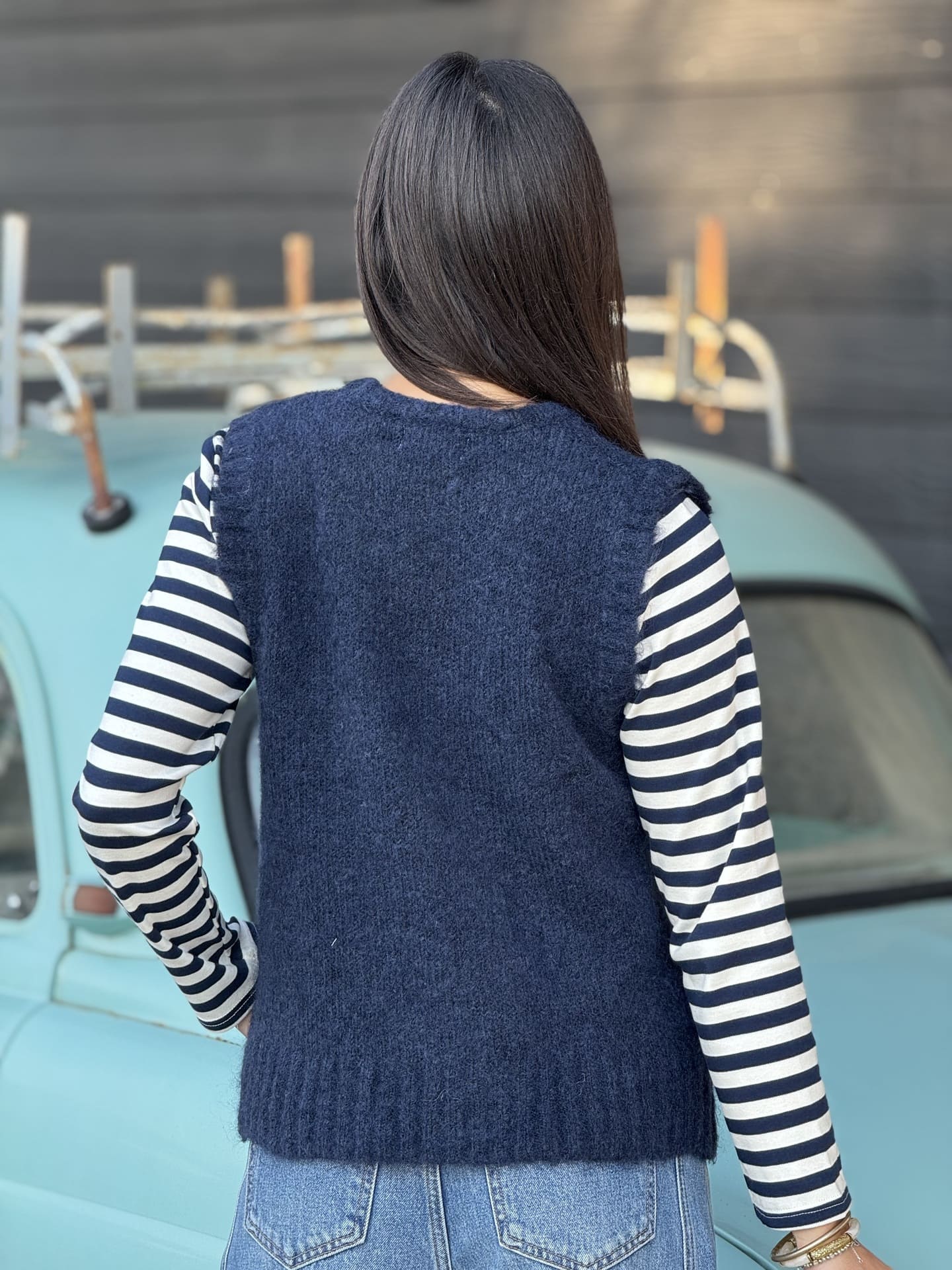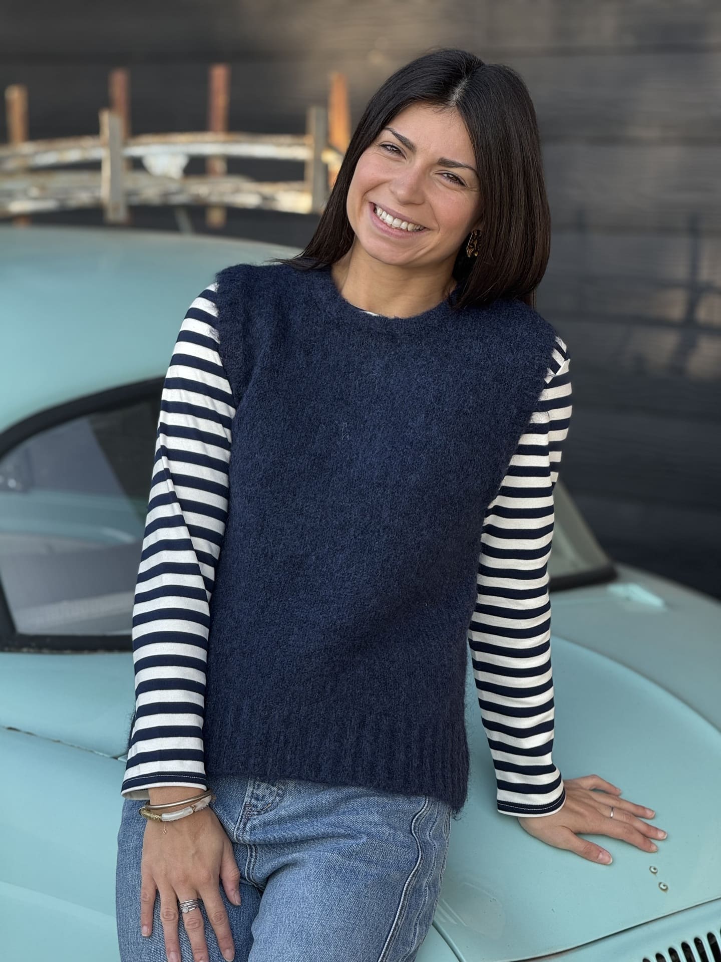 - Pull sans manche col rond