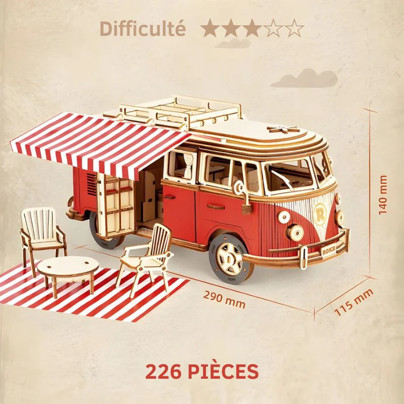 Le Puzzle 3D Van en Bois est bien plus qu’un jouet : c’est un voyage à créer de ses propres mains. Avec ses 226 pièces, il offre aux enfants dès 6 ans une expérience ludique et éducative, parfaite pour éveiller leur créativité tout en les amusant.