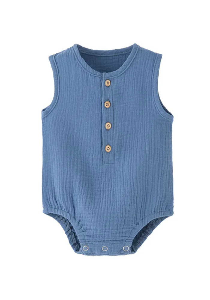 Craquez pour notre agréable pyjama bébé pour l’été de couleur qui enveloppe bébé d’un confort inégalé. Sa coupe sans manches offre une ventilation parfaite, tandis que le tissu en gaze de coton caresse la peau avec une douceur incomparable. Les petits boutons au niveau du buste sont vraiment craquants, et le système de pressions facilite le change en quelques secondes.