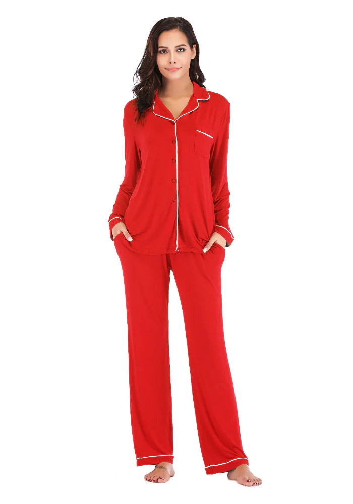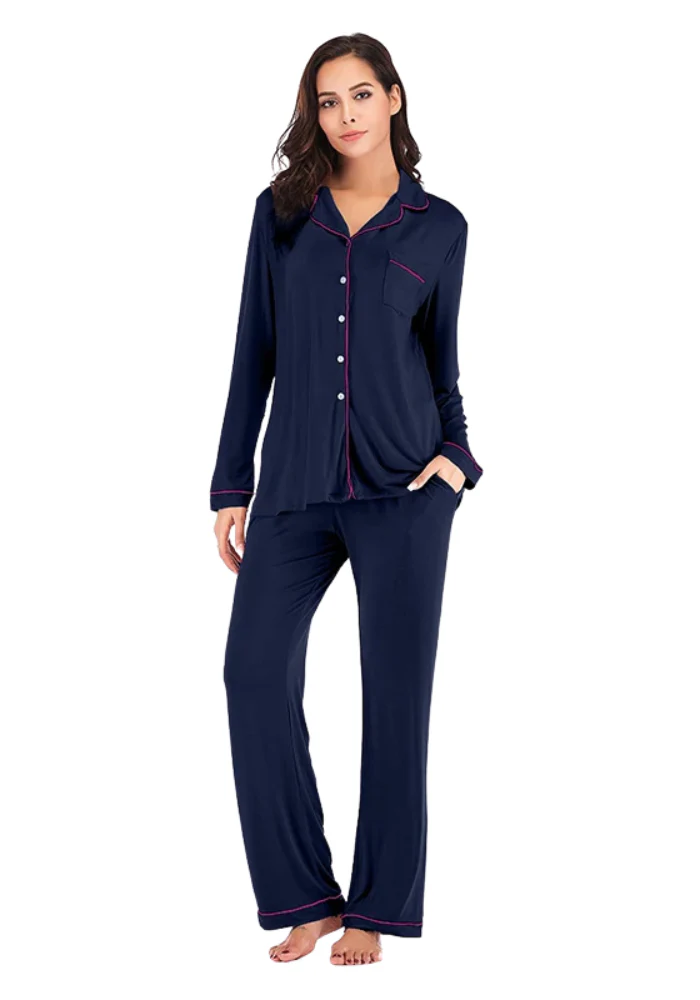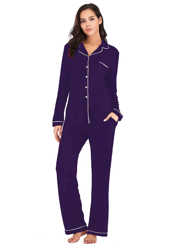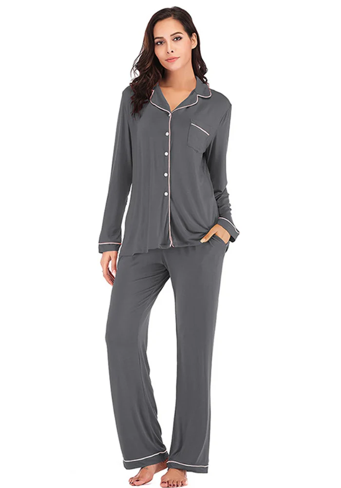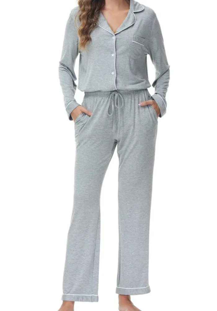 Sobre et chic, notre radieux pyjama de couleur confortable et élégant saura conquérir votre cœur. Vous allez adorer la forme du haut style chemisier orné d’une finition passepoil, qui accentue tout le charme de cette tenue. Fabriquée à partir d’un tissu doux et agréable, il garde la peau au sec et dans un cocon de douceur, tellement agréable.